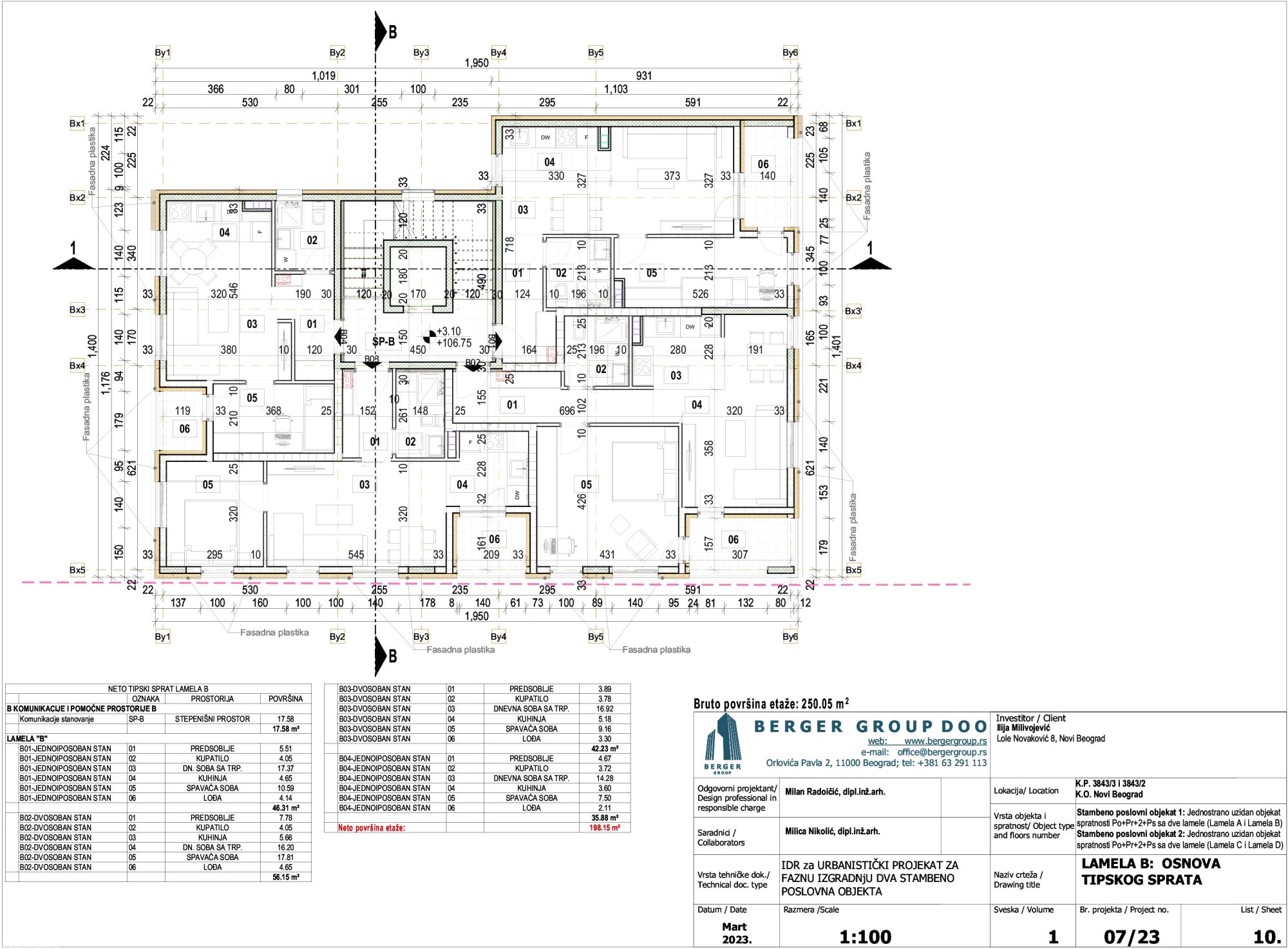 Prema projektnoj dokumentaciji, u Ulici Milana S. Minića planirana je izgradnja dva stambeno-poslovna objekta sa po dve lamele, spratnosti Po+P+2+Ps, dok ostvarena bruto površina (podzemno i nadzemno) iznosi 7.252 m².