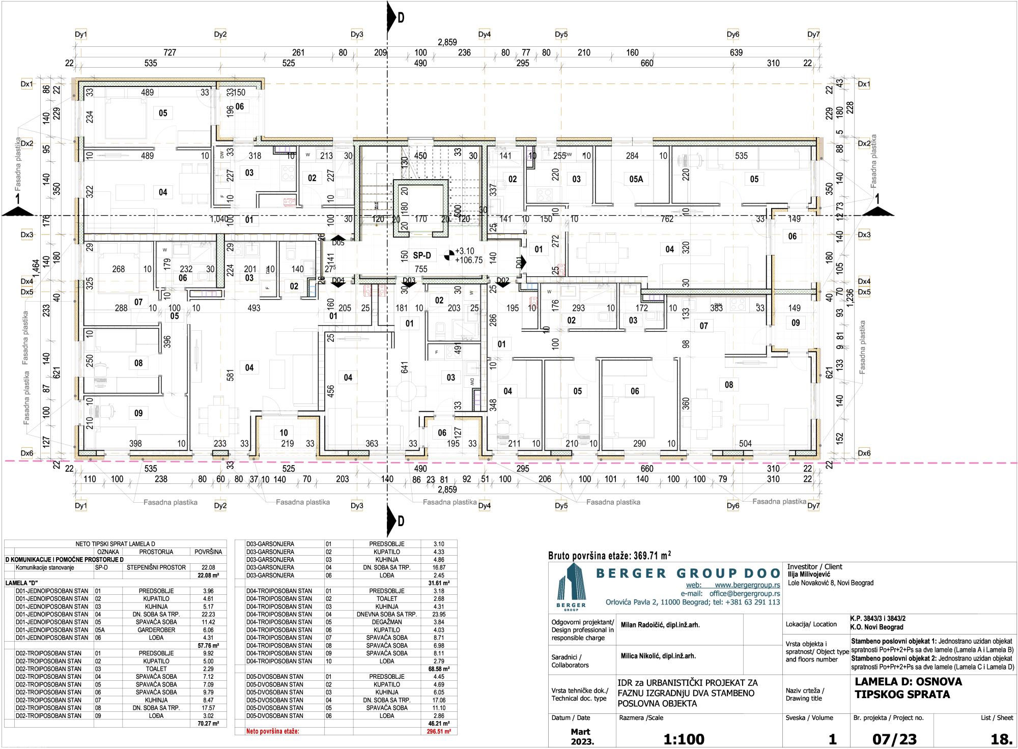 Nosilac izrade urbanističkog projekta je „Berger group” d.o.o. sa Vračara, kao odgovorni projektant idejnog arhitektonskog rešenja potpisan je Milan Radoičić, dia, dok je investitor privatno lice.
