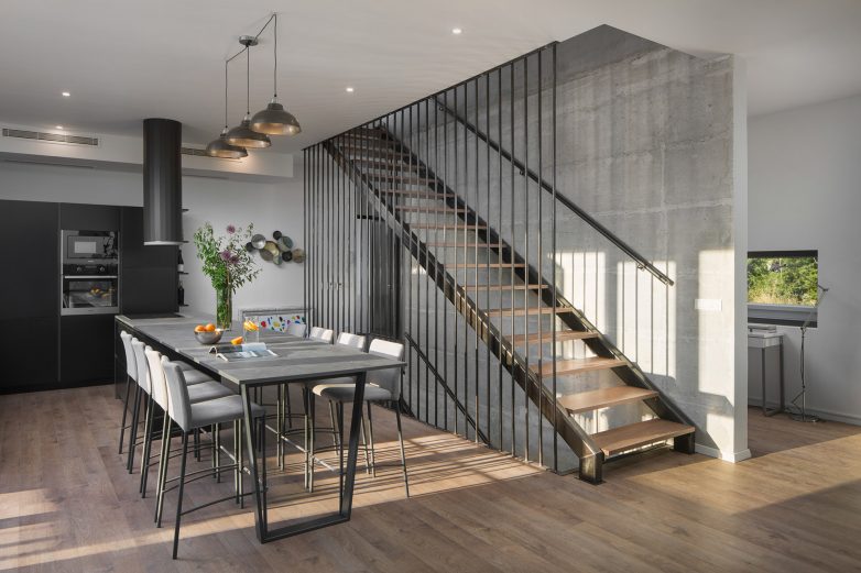 Betonski zid uz stepenište nije gletovan već je ostavljeno da se vidi priroda materijala.