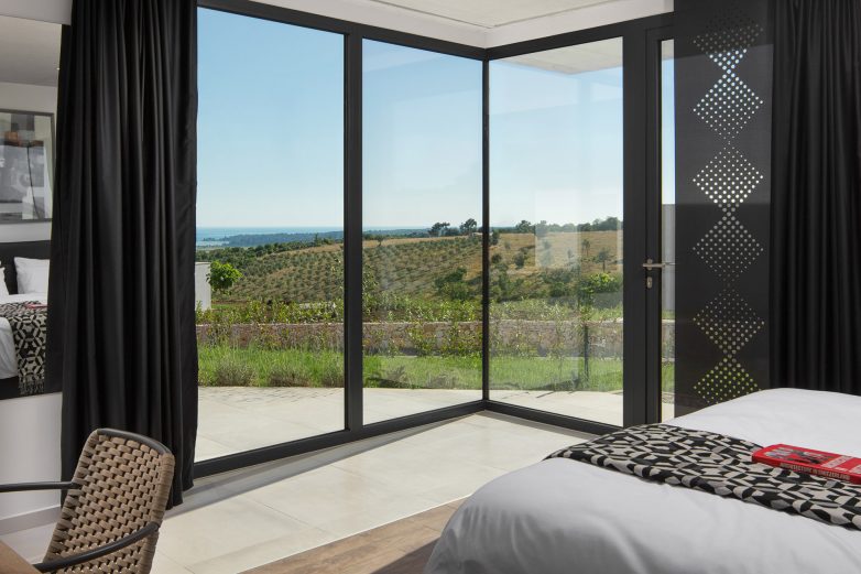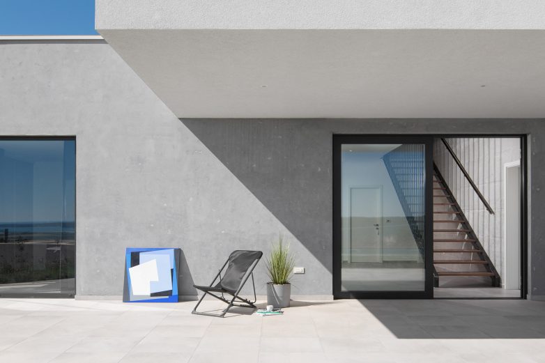 Slaganjem kubičnih modula vertikalno jedan naspram drugog stvorena je objekat s natkrivenom terasom i sobama s pogledom na more.