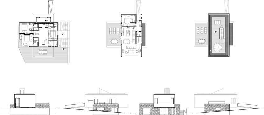 Kako bi se anticipirala buduća izgradnja i zadržao pogled, dnevni prostori nalaze se na povišenom prizemlju, dok se sobe i utilirarni prostori nalaze u suterenu. Povišenom prizemlju pristupa se preko rampe na severnoj strani.