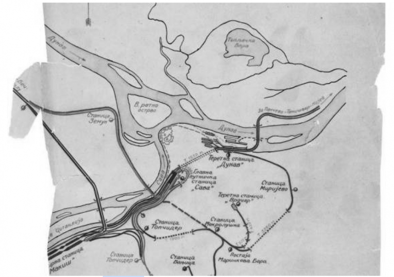 Neplanskim razvojem pomenute industrijske zone duž reka javila se potreba za proširenjem kapaciteta železničkog saobraćaja. Izgradnjom Pančevačkog mosta 1935. godine železnička pruga se trasira duž reke Dunav i oboda Kalemegdanske tvrđave. Ovim potezom Beograd dobija teški šinski saobraćaj na mestu na kome je po istom planu predviđen najveći sportski kompleks, koji takođe nije realizovan. Iako je Komisija za izradu Generalnog Plana iz 1923. godine konstatovala da Beograd ima vrlo malo parkova, koji su pritom neravnomerno raspoređeni, od planiranih 22 prostora slobodnih zelenih površina, realizovano je tek 10.