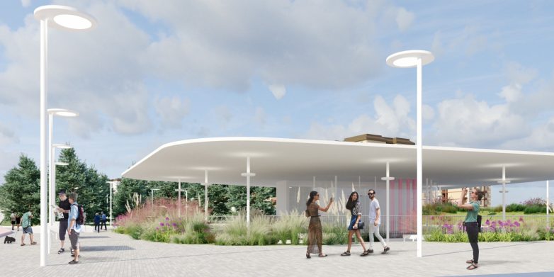 Paviljoni predstavljaju neku vrstu punktova na lokaciji, koji u integraciji sa vodom i rastinjem čine oazu za korisnike.