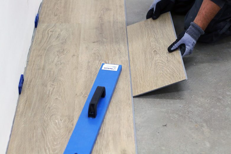 LVT daske se postavljaju umetanjem u žleb prethodne daske – dok sve ne klikne na svoje mesto.