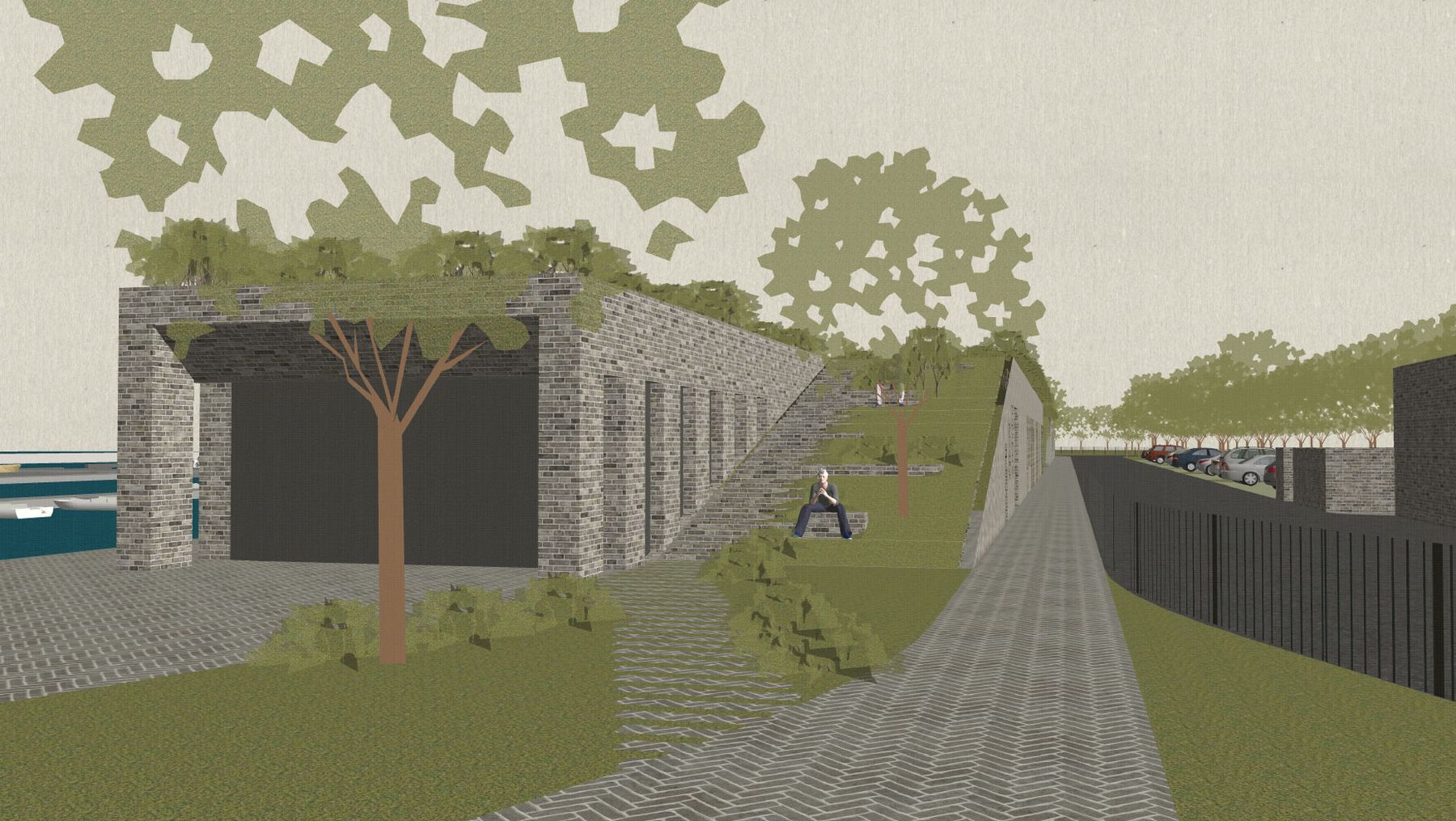 Između ove dve celine planiran je otvoreni parterni prostor – trg, kao mesto ukrštanja pešačkih komunikacija i okupljanja posetilaca marine. Na zelenim krovova objekata predviđeni su vidikovci i amfiteatarski prostori, sa kojih su omogućene vizure kako ka tvrđavi Fetislam, tako i ka Dunavu.
