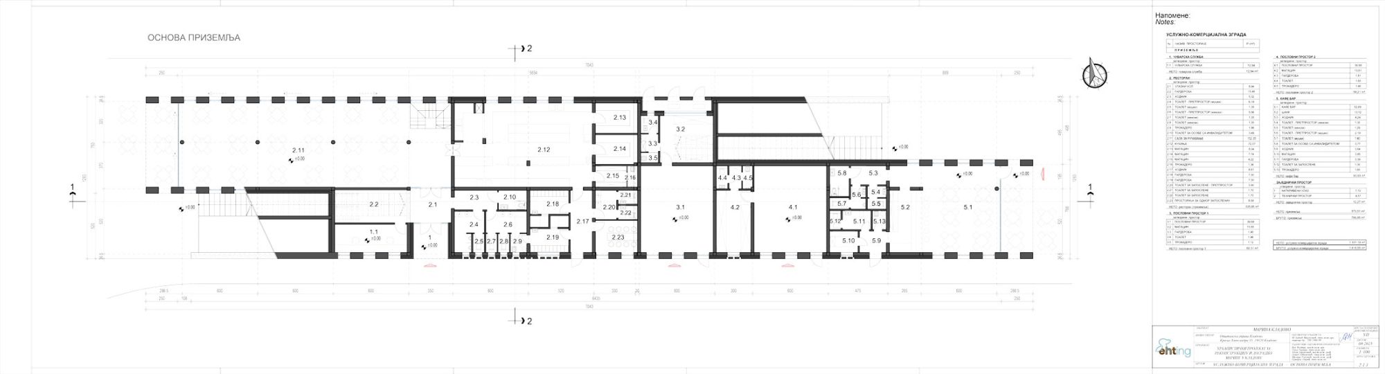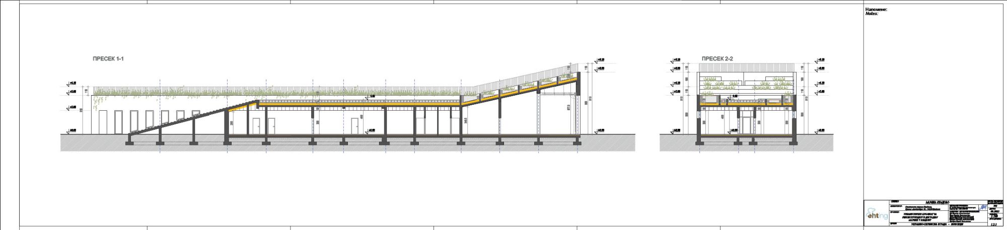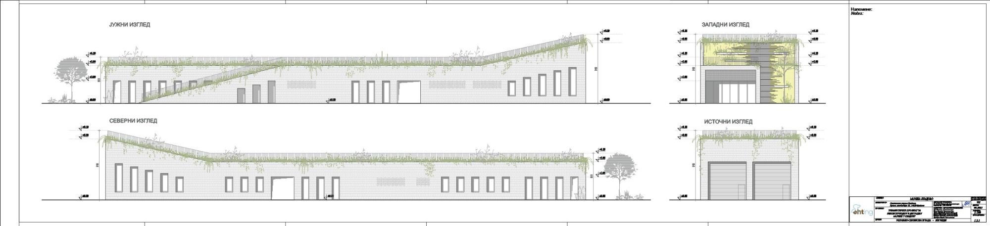 Na teritoriji marine projektovane su dve zgrade koje objedinjuju sadržaje neophodne za funkcionisanje kategorisane marine prema standardima kategorizacije – upravno-servisna zgrada i uslužno-komercijalna zgrada.