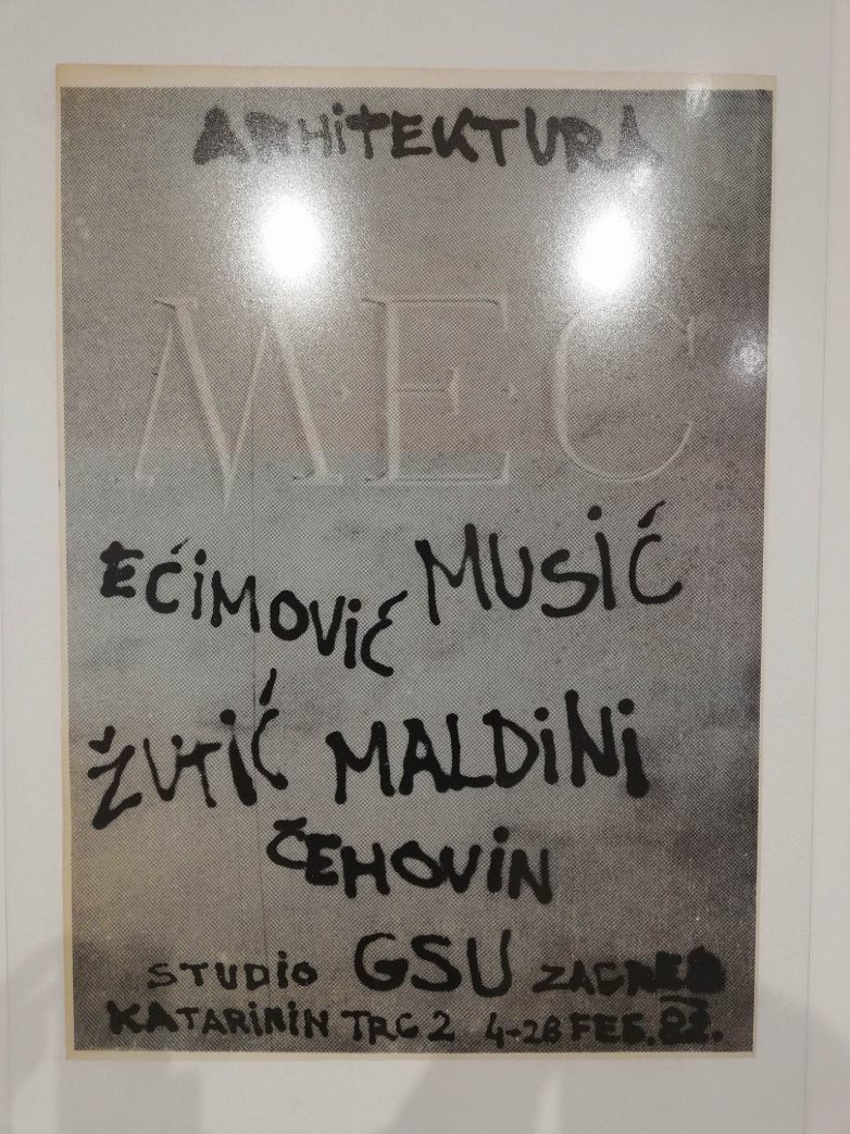 Ovaj impuls su polovinom sedamdesetih odlično prepoznali mečovci, nastupajući sa svojim autorskih izložbama. Marjan Čehovin i Mustafa Musić organizuju izložbu „Alternativna arhitektura (Galerija SKC, 1975), za njima Dejan Ećimović sa izložbom „Primarna arhitektura“ (Galerija SKC, 1979), a nakon toga i Slobodan Maldini sa projektom „Misaoni prostori ili prilog grafičkom istraživanju estetike prostora“ (Galerija SKC, 1980). Nakon ovih spontanih obraćanja publici, to jest, međusobnog prepoznavanja i okupljanja oko zajedničkih ideja vodilja, Grupa MEČ je zvanično osnovana 1. januara 1980. godine u stanu Mustafe Musića. Isprva je brojala tri člana, a ime je dobila po početnim slovima njihovih prezimena – Musić, Ećimović i Čehovin. Kasnije im se priključuju druga dvojica – Maldini i Žutić.