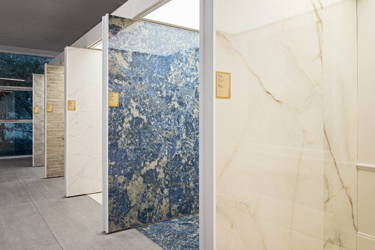 Tako je u ovom primeru postavljen plavi mermer brend Cedit, serija Araldica koju je dizajnirao Federico Pepe.