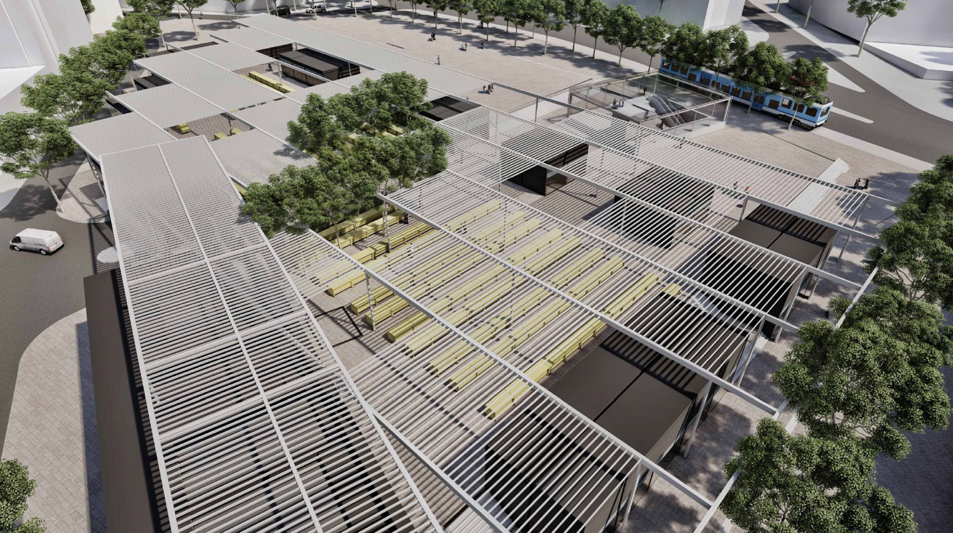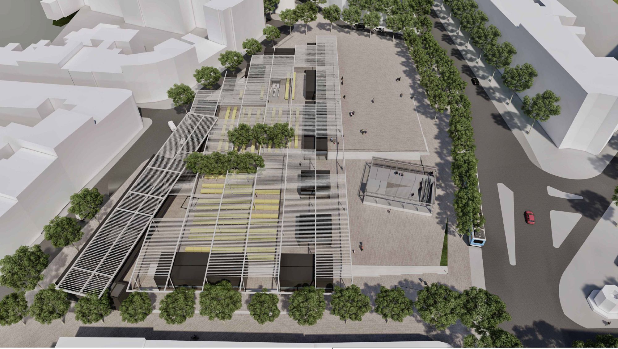 U okviru parcele pijace planirani su prošireni trotoari sa drvoredima duž ulica Skadarske, Đorđa Jovanovića i prostor trga – plato duž ulice Džordža Vašingtona sa obodnim lokalima, čime se omogućuje da pojedini prostori pijace imaju radno vreme i posle zatvaranja središnjeg pijačnog platoa .