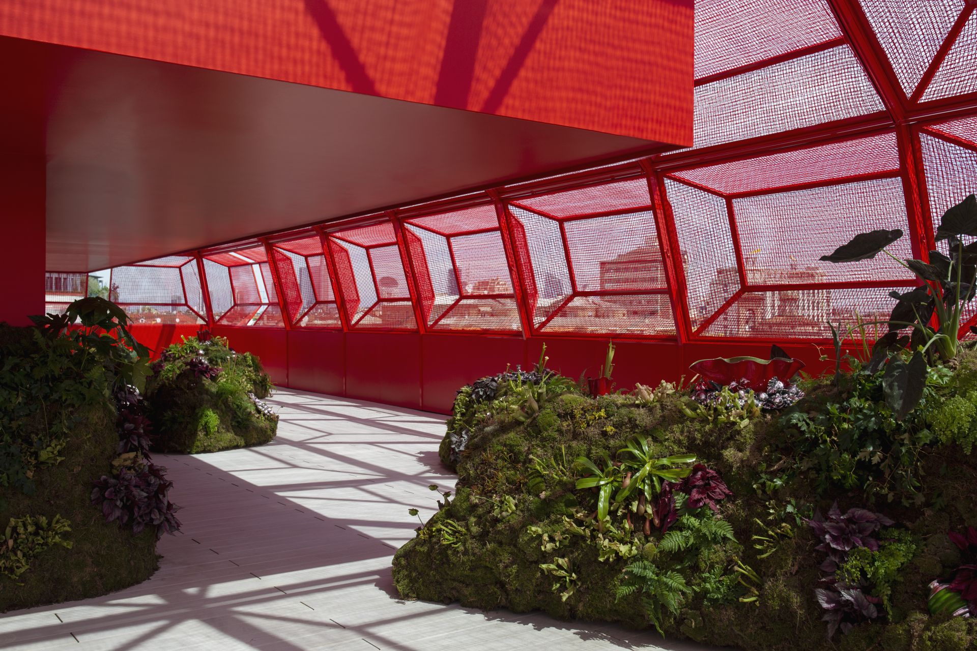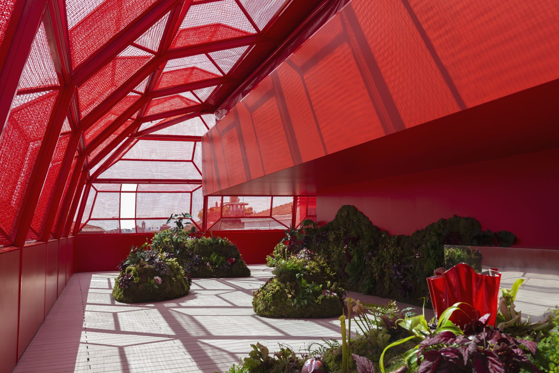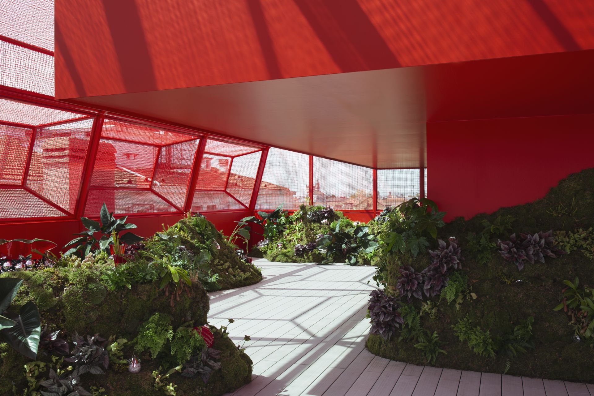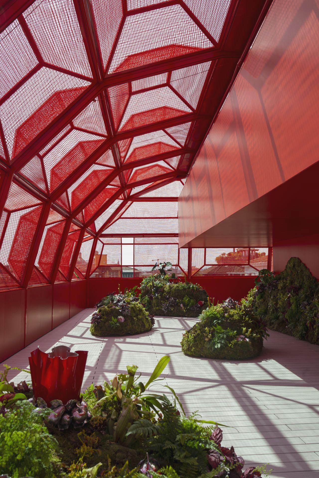 Instalacija „Buccellati Rosso Maraviglia“, osmišljena od strane multidisciplinarnog studija AMDL CIRCLE i arhitekte Mikelea De Lukija, transformiše terasu Portaluppi u Via Brisa u moderan Panteon koji zatvara unutrašnjost svojim crvenim omotačem.