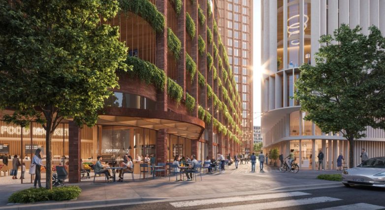 Plan razvoja uključuje i nekoliko drugih objekata srednje visine sa sličnom materijalizacijom i formama. Vizuelizacije prikazuju objekte sa zaobljenim ivicama i maloprodajnim prostorima duž ulice, koji su raspoređeni ispod podijuma zgrada prekrivenih visećom vegetacijom.