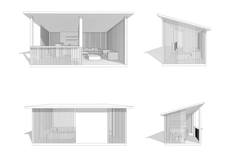 „Vrlo jasno sam to sebi predstavio već u prvom crtežu. Pomislio sam – želim samo da uđem i imam dovoljno prostora da se posvetim radu na laptopu, čitanju i slično. Takođe, kada izađem želim da sednem i popijem kafu u blizini radnog prostora. Otuda neke skice koje ukazuju na tu mogućnost – da čovek izađe, sedne i odmori jednostavno“, kaže Maričić.