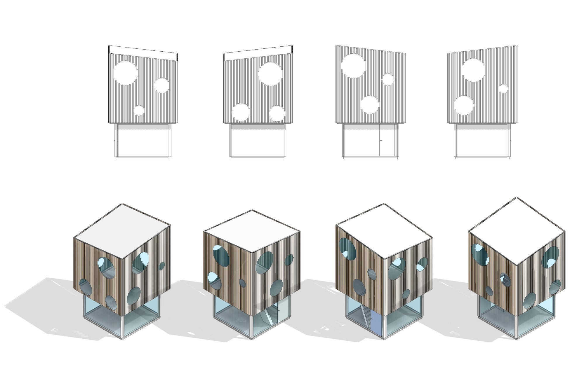 Staklo bi se, dodaje, koristilo za zastakljenje velikih otvora koji pružaju dovoljnu količinu svetlosti, dok bi se hrast ili borovina takođe mogli koristiti i za fasade.