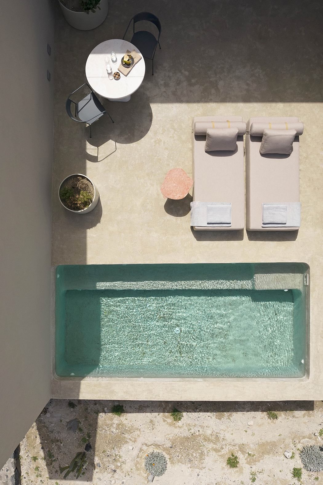 „Tokom letnjeg perioda, kada je sunčeva svetlost zaslepljujuća, gosti se mogu rashladiti u malim bazenima smeštenim na obodu monolita, okruženi divljim mediteranskim biljem“, istakli su autori arhitekture.