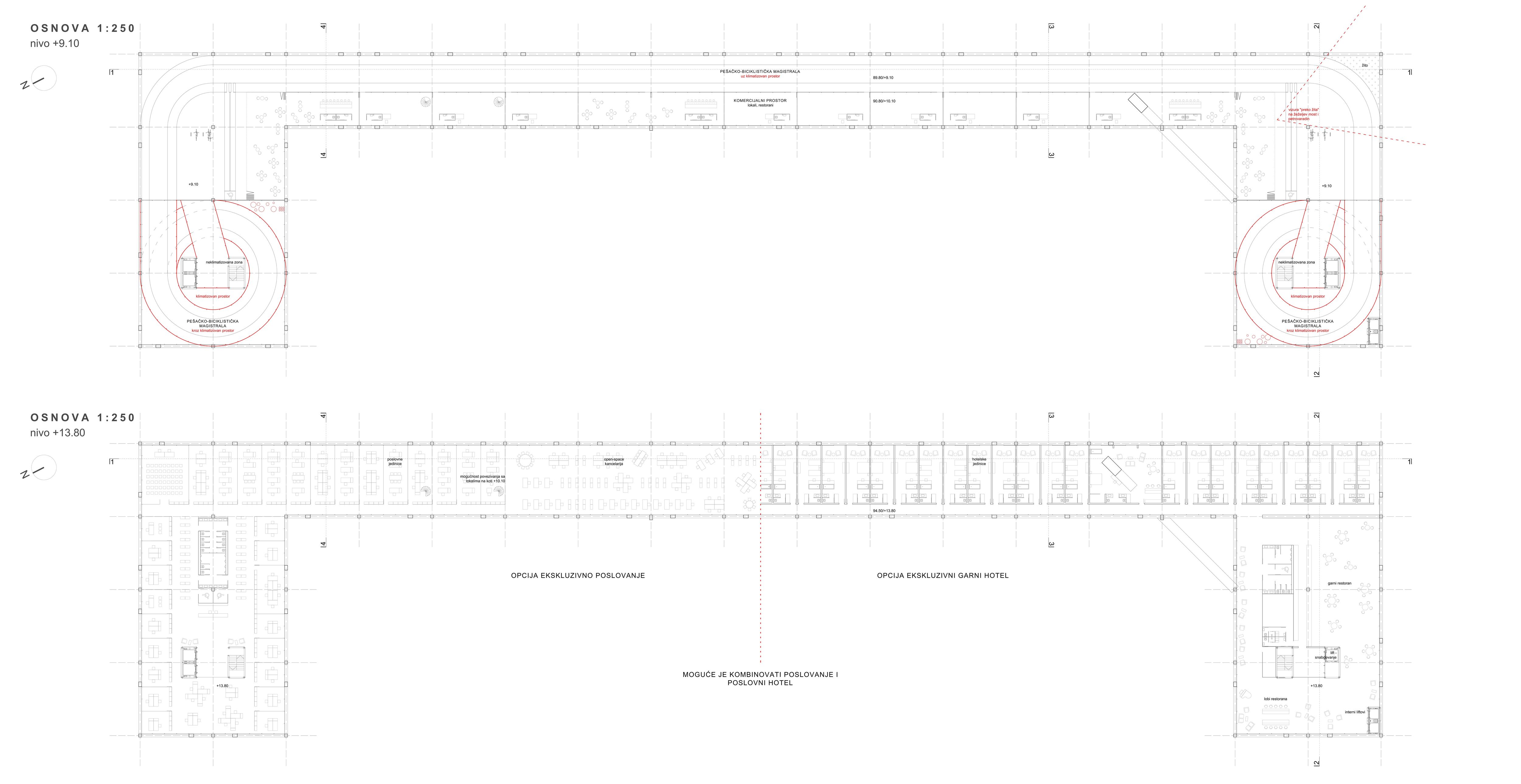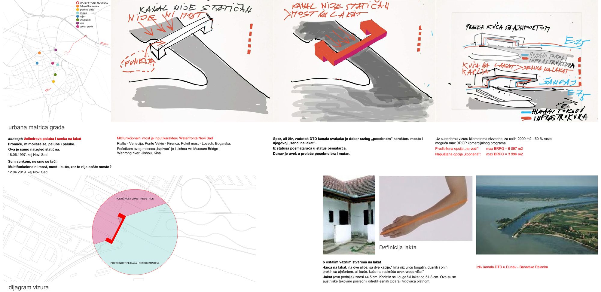 Na osnovu prispelih radova, primetili smo da su se gotovo svi vodili konceptom da most i komercijalni objekat postave kao dva zasebna elementa, često s mostom koji ima veoma kompleksnu, robusnu formu, koja ne odgovara razdaljini koju bi trebalo premostiti. S druge strane, komercijalni objekat je svuda predstavljan takođe veoma kompleksno, zasenjujući time most, kao centralnu temu konkursa. Tim ARCVS je problemu prišao potpuno drugačije.