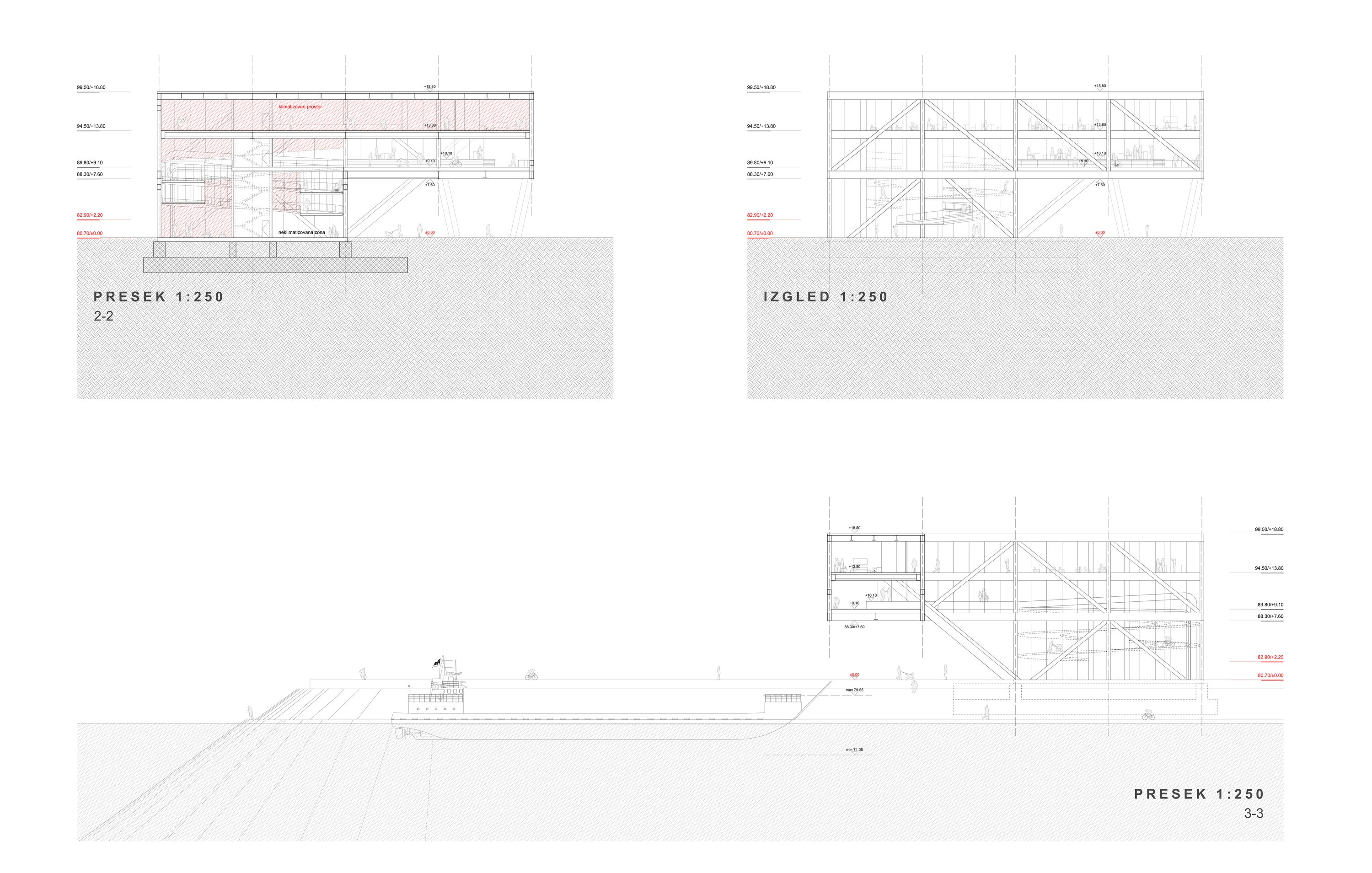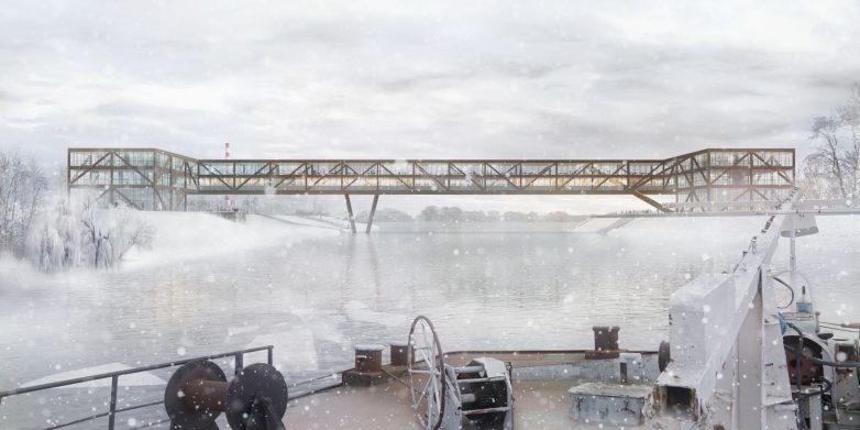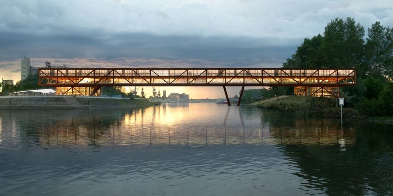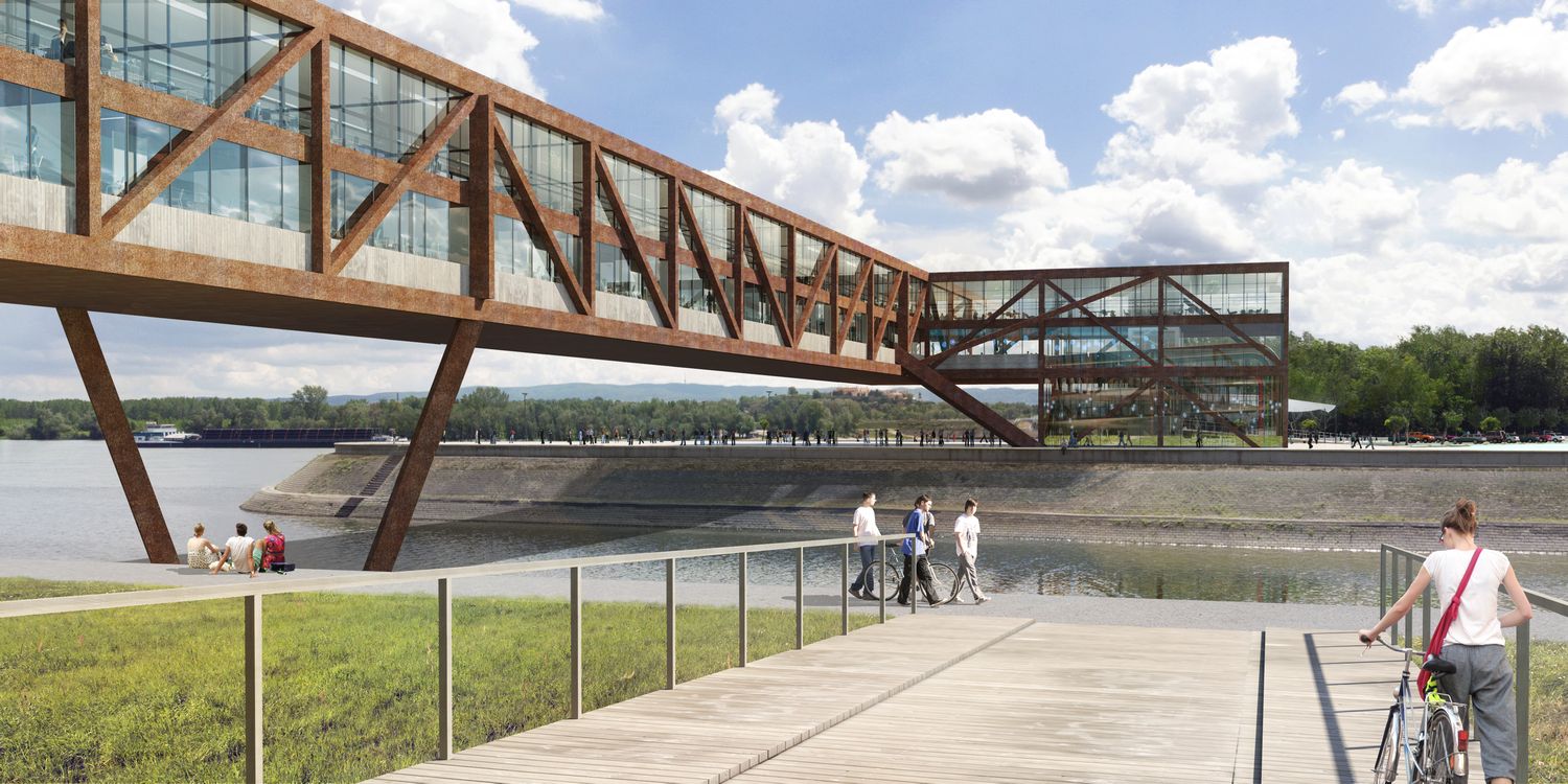 Kako u raspisu nije pisalo gde bi trebalo postaviti multifunkcionalni objekat, autori su odlučili da ga integrišu sa mostom, vodeći se time istorijskim primerima pokrivenih mostova, kao što su Rialto u Veneciji ili Ponte Vekio u Firenci.