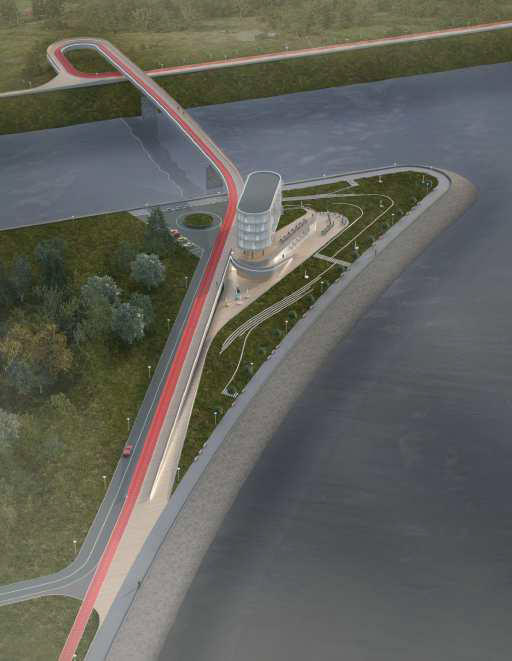 Objašnjenje žirija: Kvalitet rešenja predstavlja jasno definisan saobraćajni tok sa naglašenom i razrađenom vezom sa biciklističkim tokovima na keju i, s druge strane, sa biciklističkom rutom prema Kovilju. Istovremeno, ovakvo rešenje je „nosilac“ estetike mosta, sa svedenom i elegantnom linijom.