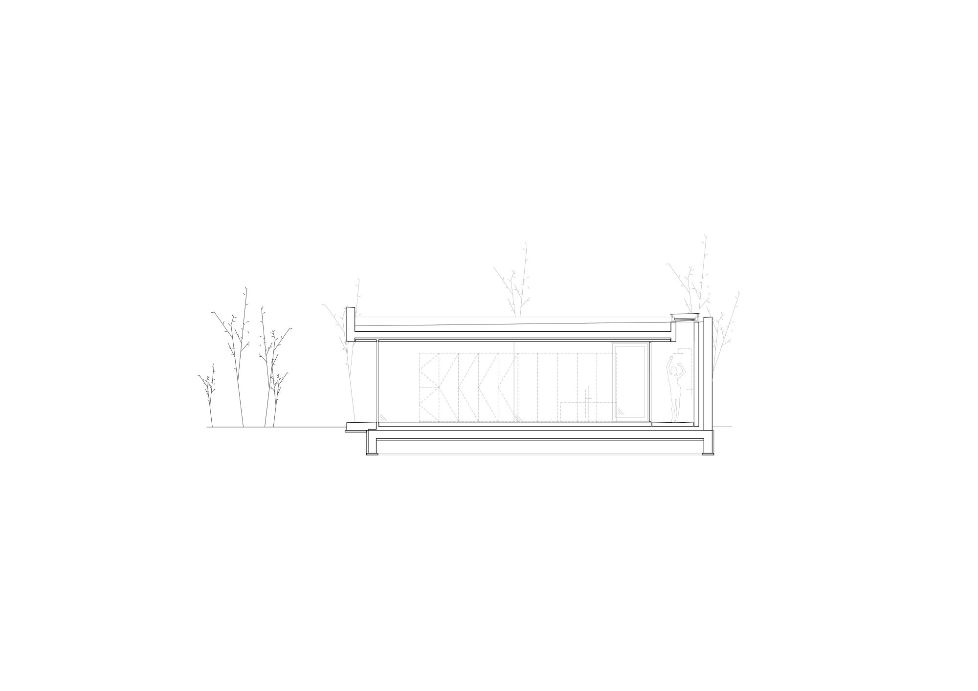 „Život je organizovan oko bašte, svetlosti i sezonskih promena, nastavljajući lokalnu tradiciju niskih stambenih objekata koje karakteriše velikodušno zastakljivanje, duboke nadstrešnice i fluidni prelazi između enterijera i eksterijera.“