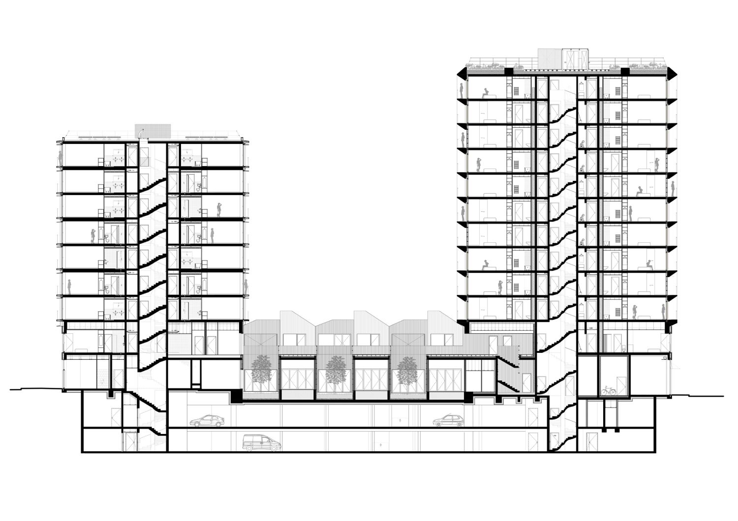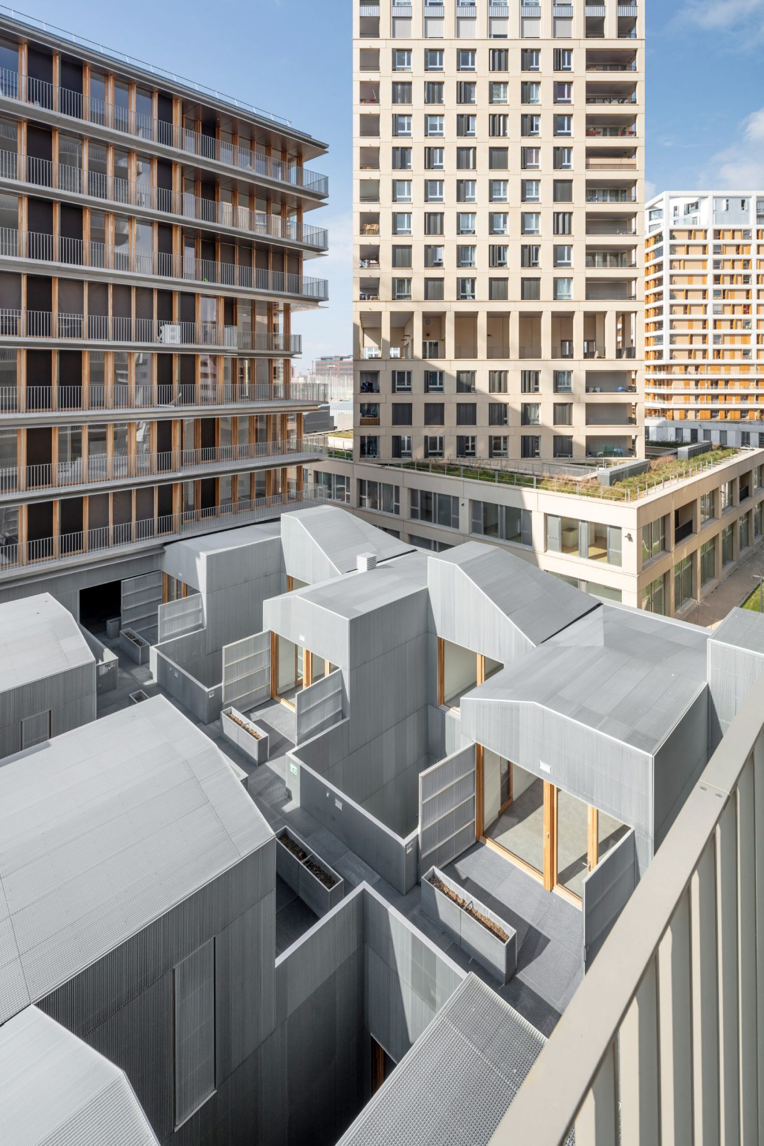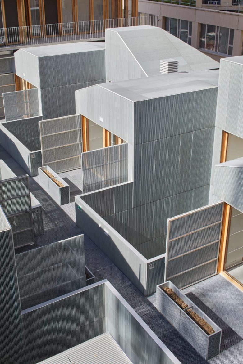 Dok su gusto organizovane stambene jedinice referencu pronašle u tradicionalnom pariskom uličnom pejzažu, sa druge strane kosi krovovi evociraju izgled obližnjih železničkih skladišta.