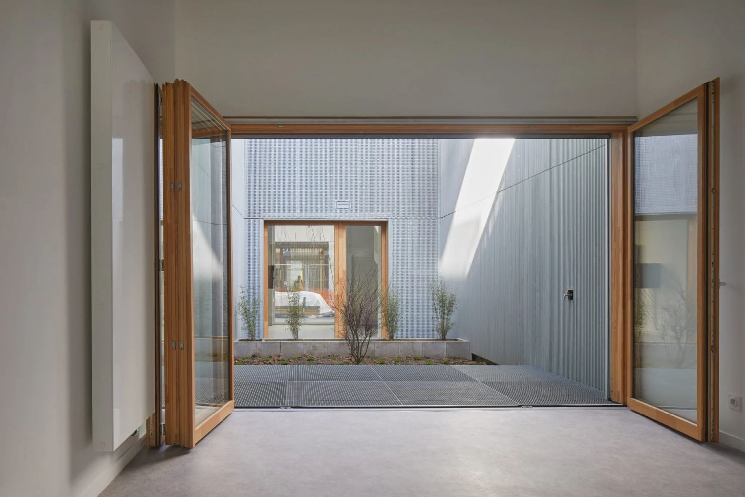 Paleta materijala, koja pored drveta, stakla i betona, sadrži i čelične i aluminijumske površine stvara kohezivnu, industrijsku estetiku.