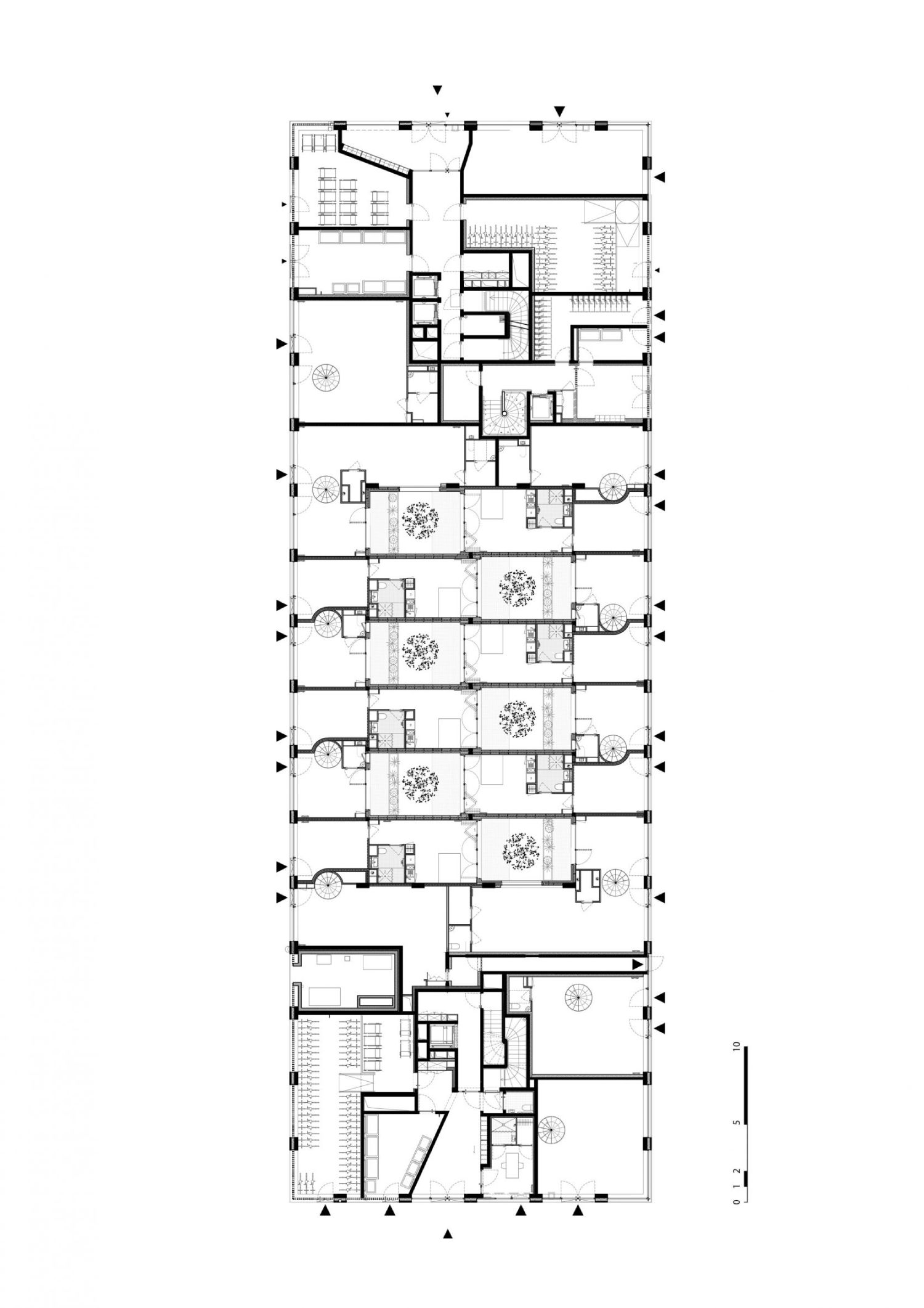 Zgrada je organizovana oko kompaktnog cirkularnog jezgra, sa tehničkim prostorima organizovanim bliže centralnom delu, dok su obodni delovi ostavljeni za dnevne prostore i spavaće sobe.