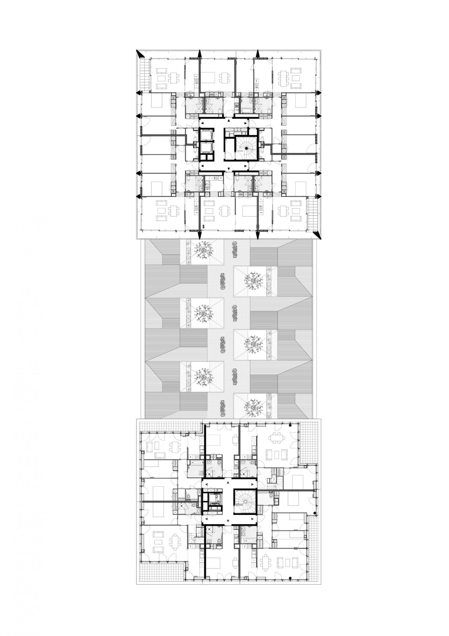 „Zamislili smo petu fasadu kao novi „metalni pokrivač“ napravljen od perforiranog, rebrastog aluminijuma koji mestimično kreira četvorovodne krovove ili se poništava, kako bi se kreirala dvorišta i terase obložene pocinkovanom čeličnom rešetkom.“