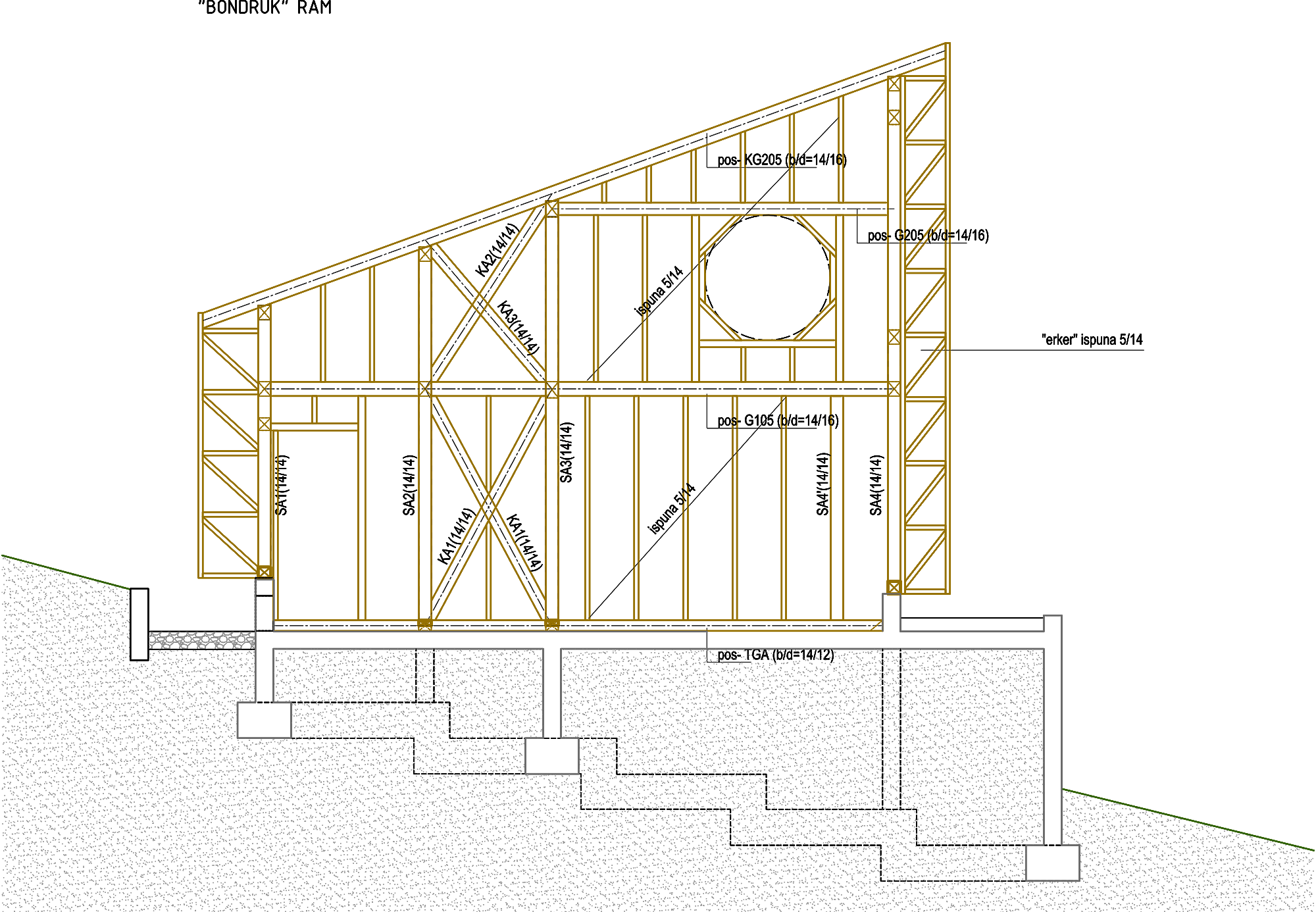Krovnu konstrukciju čine rogovi oslonjeni preko „bondručnih“ ramova.