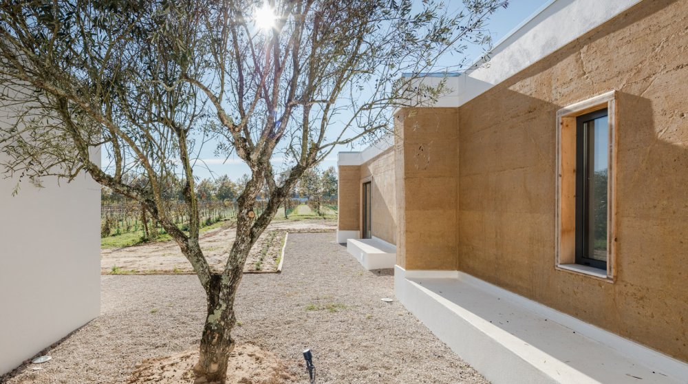 Arhitektonski studio Blaanc potpisuje projekat prizemne kuće u osunčanom Portugalu, nedaleko od Lisabona, koja koristi nabijenu zemlju, solarnu nadstrešnicu i velike staklene površine kako bi zimi ostala topla a leti hladna. Kuća od 319 kvadrata, zbog energetski efikasnog pristupa projektovanja i gradnje, pravi značajno manje račune za energente.