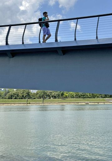 Što se tiče biciklista, za njih je rezervisana posebna biciklistička staza koja prolazi ispod mostića. Treba napomenuti da ni nakon mesec i po dana od otvaranja Selfi mosta još uvek nisu otvorene sve pristupne staze, jer se u neposrednoj blizini nalazi gradilište Kule Beograd.
