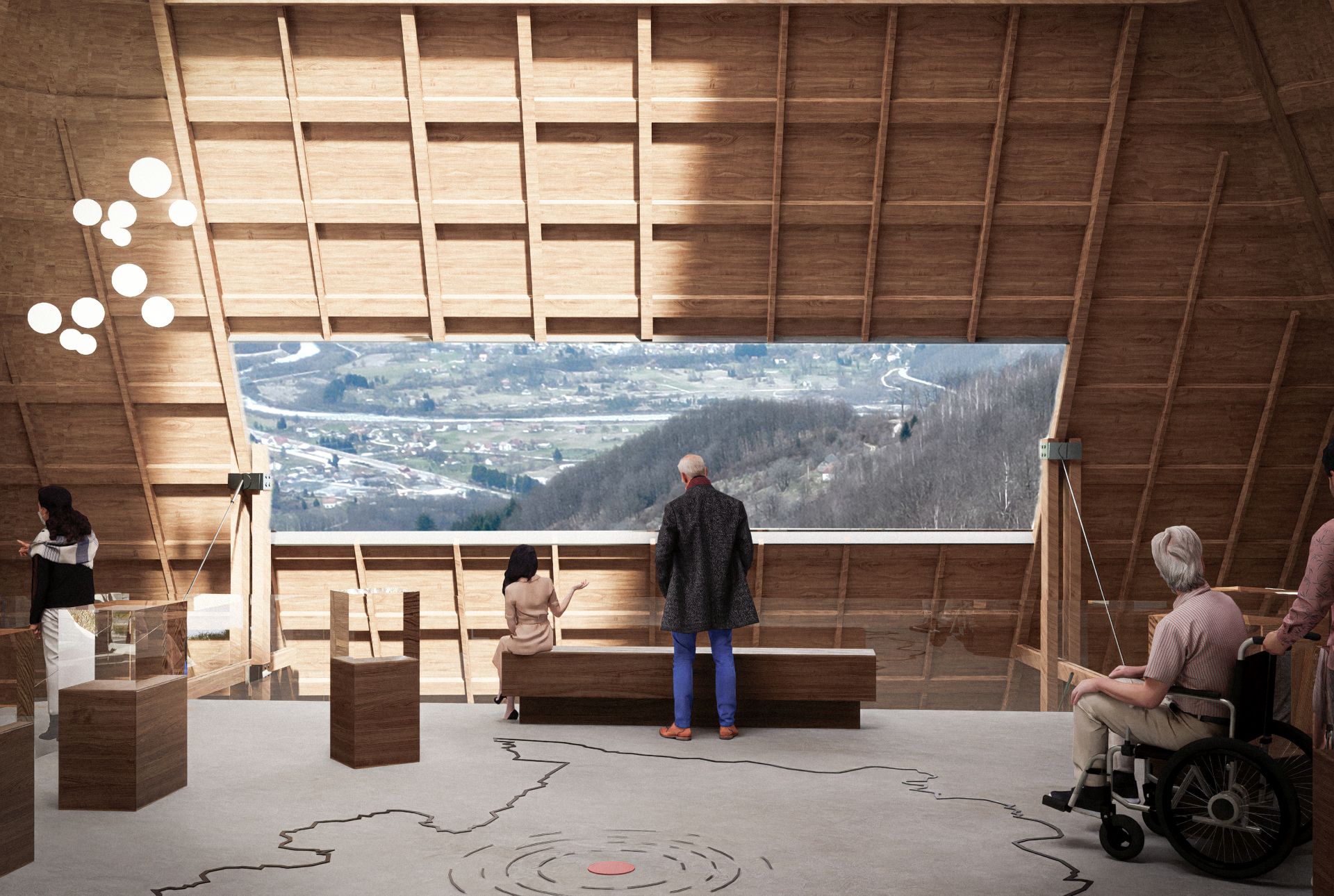 Dobro pozicioniranje i distribucija forme doprinose utisku neodvojivosti objekta od zatečene topografije i ambijenta same lokacije.