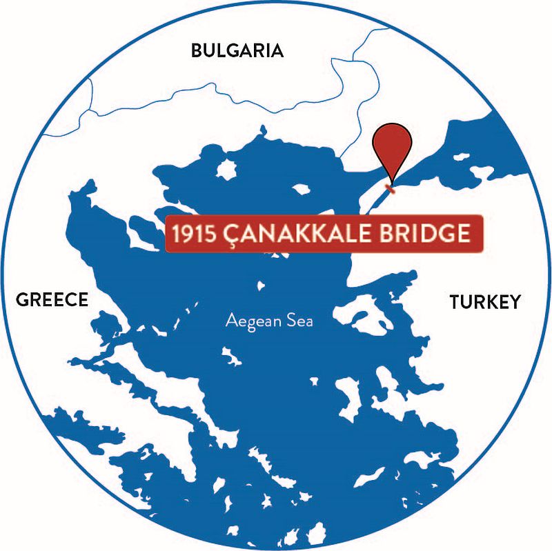 Tačno sto sedam godina kasnije, otvoren je novi drumski prelaz preko ovog moreuza – kontinentalne granice između Azije i Evrope. Nazvan je Most Čanakale 1915, i sa glavnim rasponom od 2.023 metra struktura vredna 2,5 milijarde vera sada je najduži viseći most na svetu.