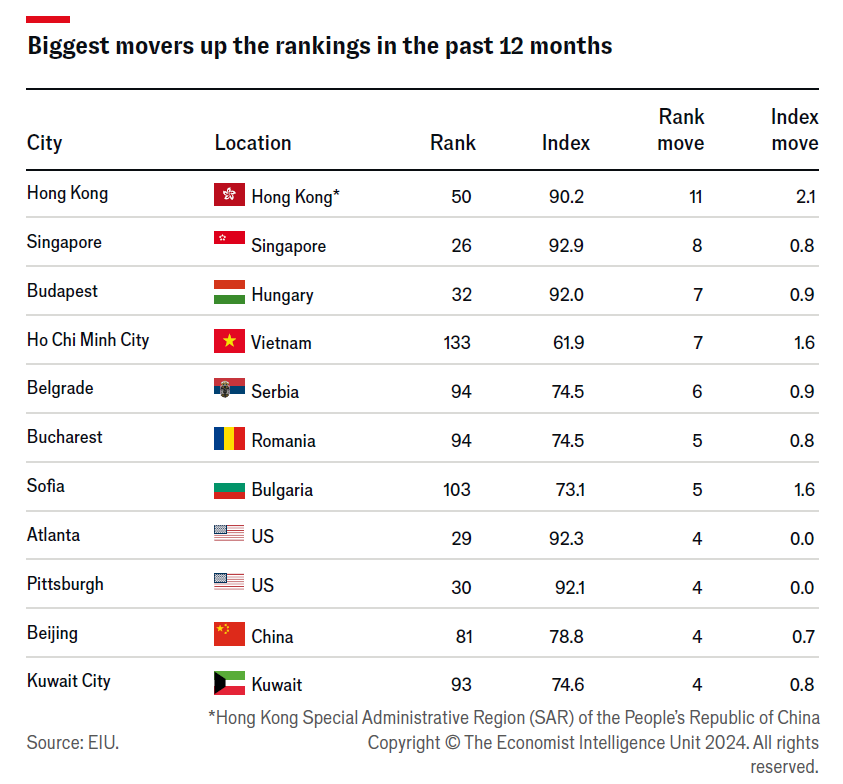 I ove godine Economist Intelligence Unit (EIU), sestrinska kompanija magazina The Economist, objavio je krajem juna Globalni indeks kvaliteta života za 2024. godinu, rangirajući gradove po različitim kriterijuma.
