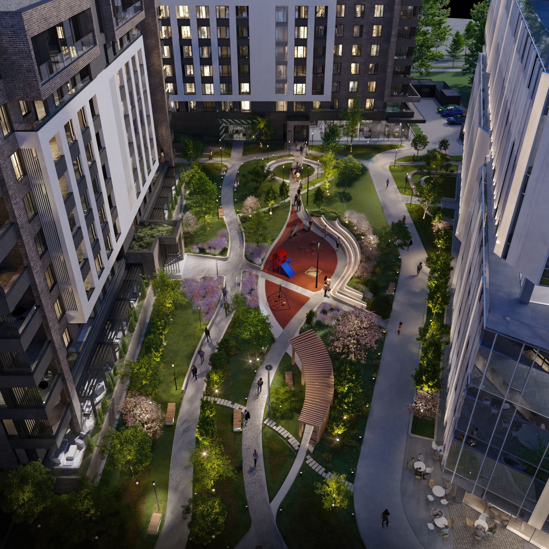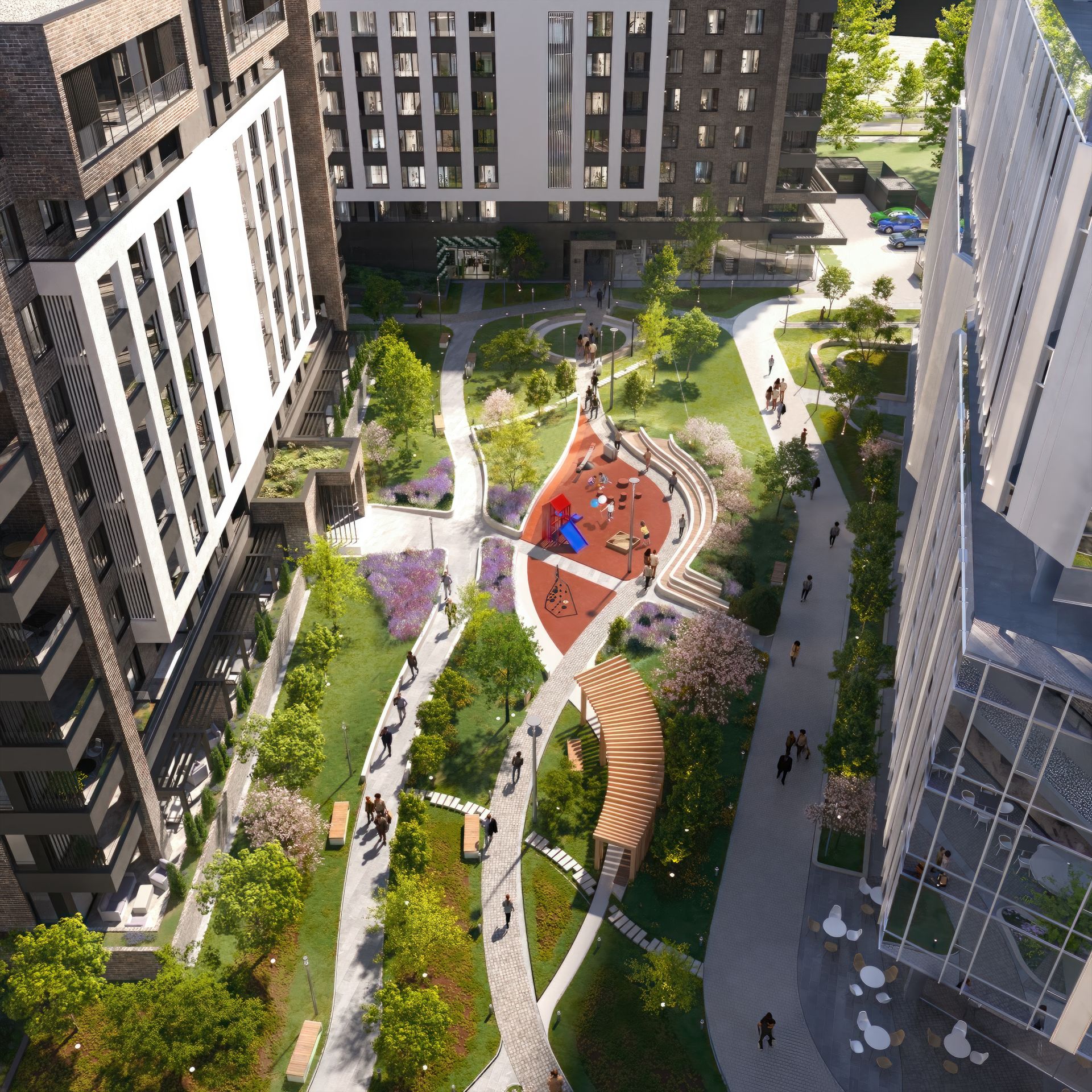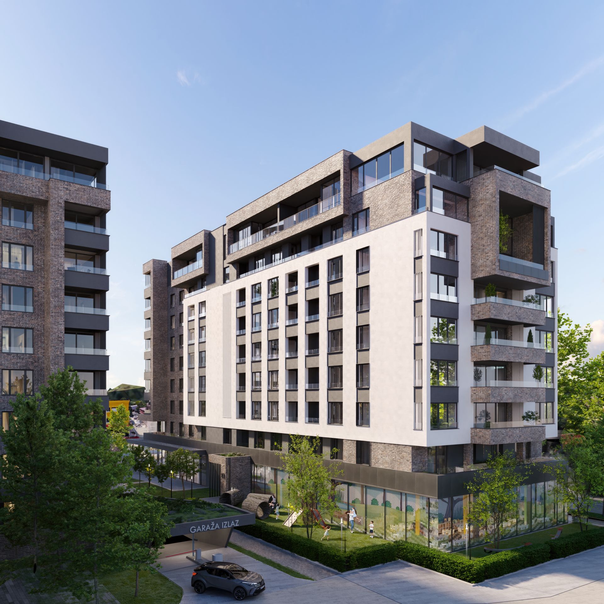 „Posebni ambijenti sa sedenjem i pešačkim stazama u dvorištu pružaju mogućnosti za šetnju i opuštanje za sve stanare, uz sigurnost koju pruža centralno obezbeđenje na nivou kompleksa“ – kaže arhitekta.