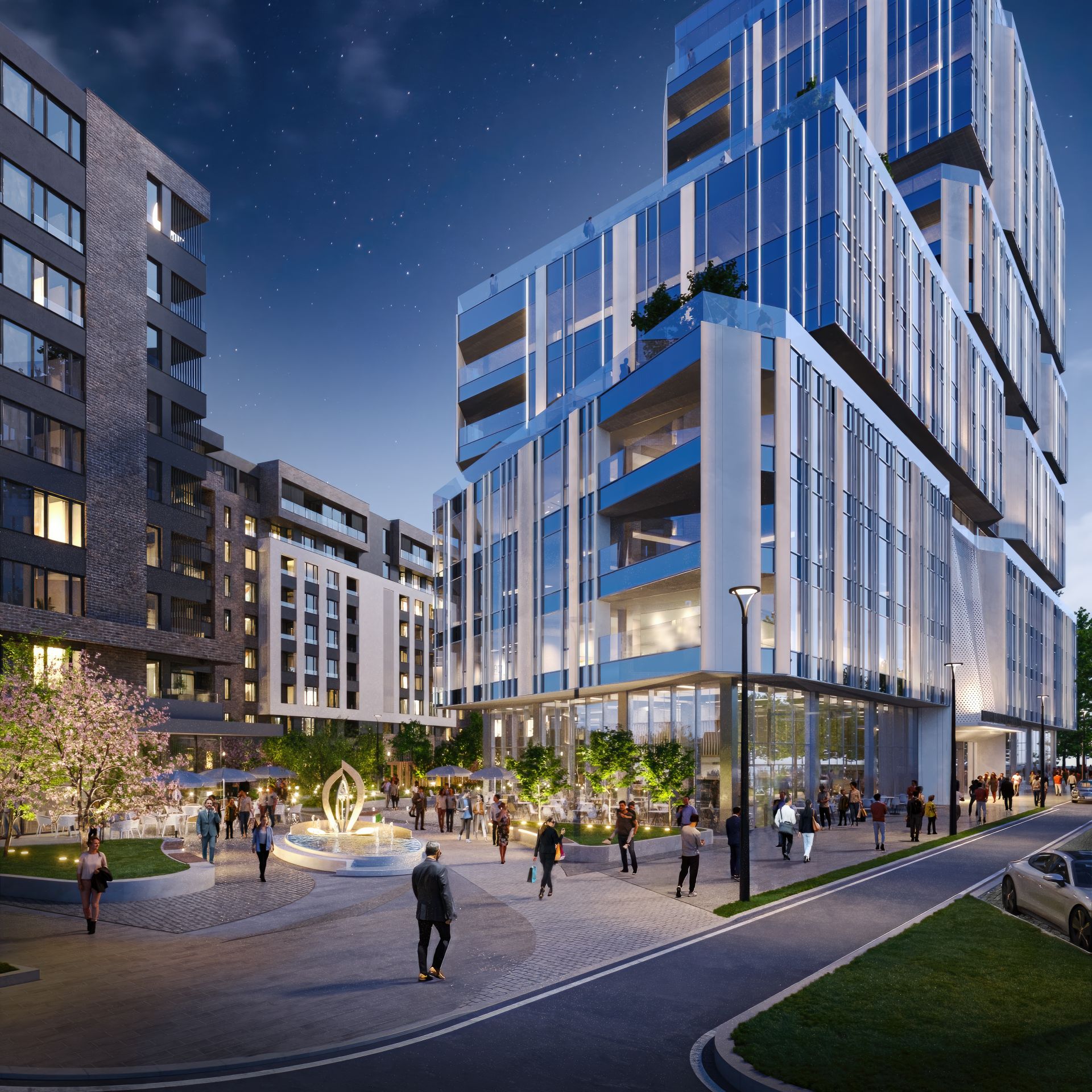 Ovaj ambijent upotpunjuje novi gradski trg – piazzetta sa atraktivnom vodenom površinom i fontanom, koji će svojom ponudom restorana, kafea i drugih atraktivnih sadržaja i usluga svakako ući na listu novih gradskih destinacija.