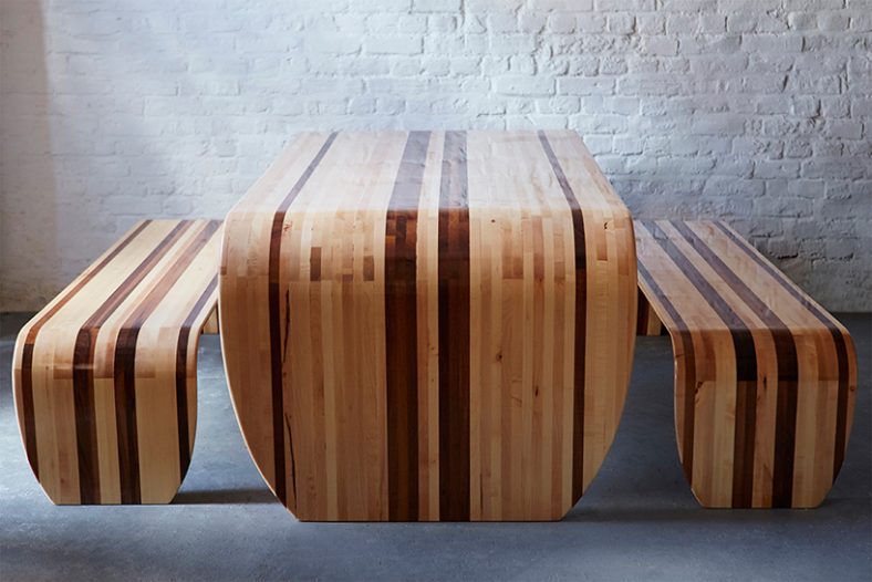 Set koji čini sto i klupe napravljen od drveta balze izrađen je istim alatom i tehnikom koju su koristile i zanatlije sa Havaja za izradu prvih daski za surfovanje.