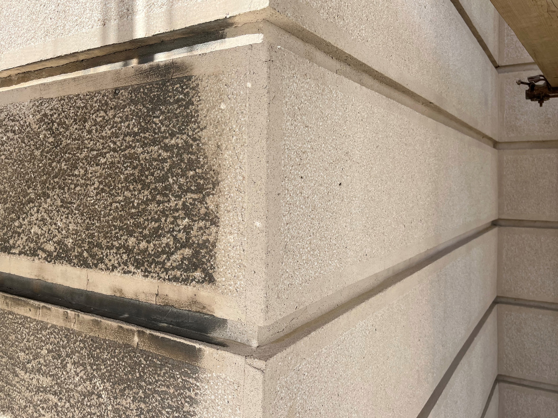 Fasada objekta izvedena je u kombinaciji štokovanog i zaglađenog veštačkog kamena. Na mestima gde je veštački kamen oštećen, vrši se pažljivo obijanje, a nakon toga izrada novog veštačkog kamena. U konačnoj obradi novi veštački kamen treba da bude u svemu isti kao i postojeći veštački kamen.