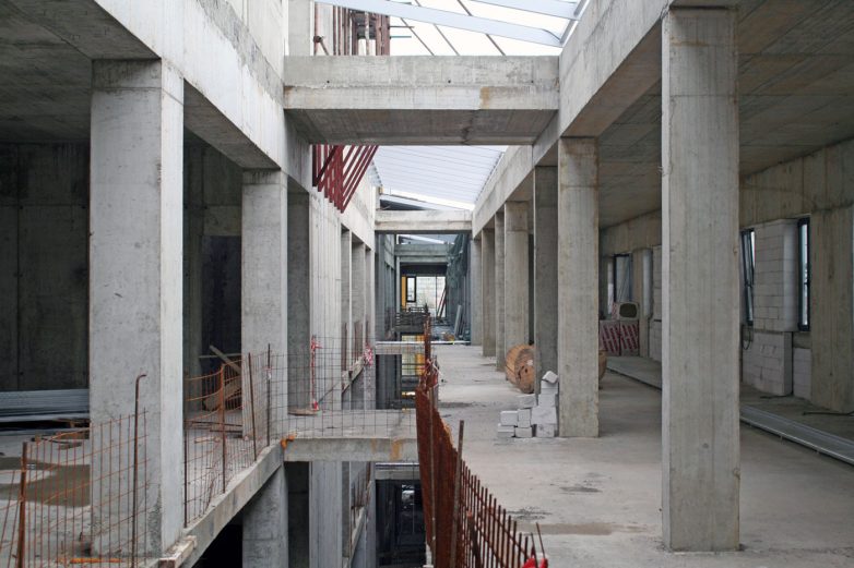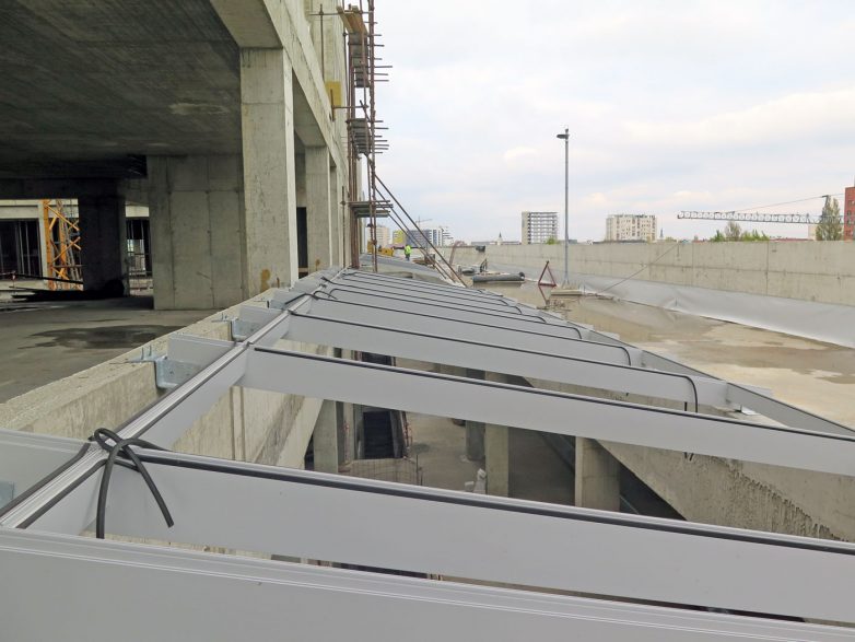 Pristup dnevne svetlosti u unutrašnjost ovog monolitnog zdanja omogućiće tri atrijuma. Podnožje jednog od njih čini perforirana tavanica prvog sprata, koja će biti prekrivena ojačanim staklom, tako da osvetljava prostrani hol s tribinama, u kojem se trenutno odvijaju radovi na staklenim portalima. Uporedo se postavljaju pregradni zidovi, ventilacioni vodovi, sistem za gašenje požara, električne i vodovodne instalacije.