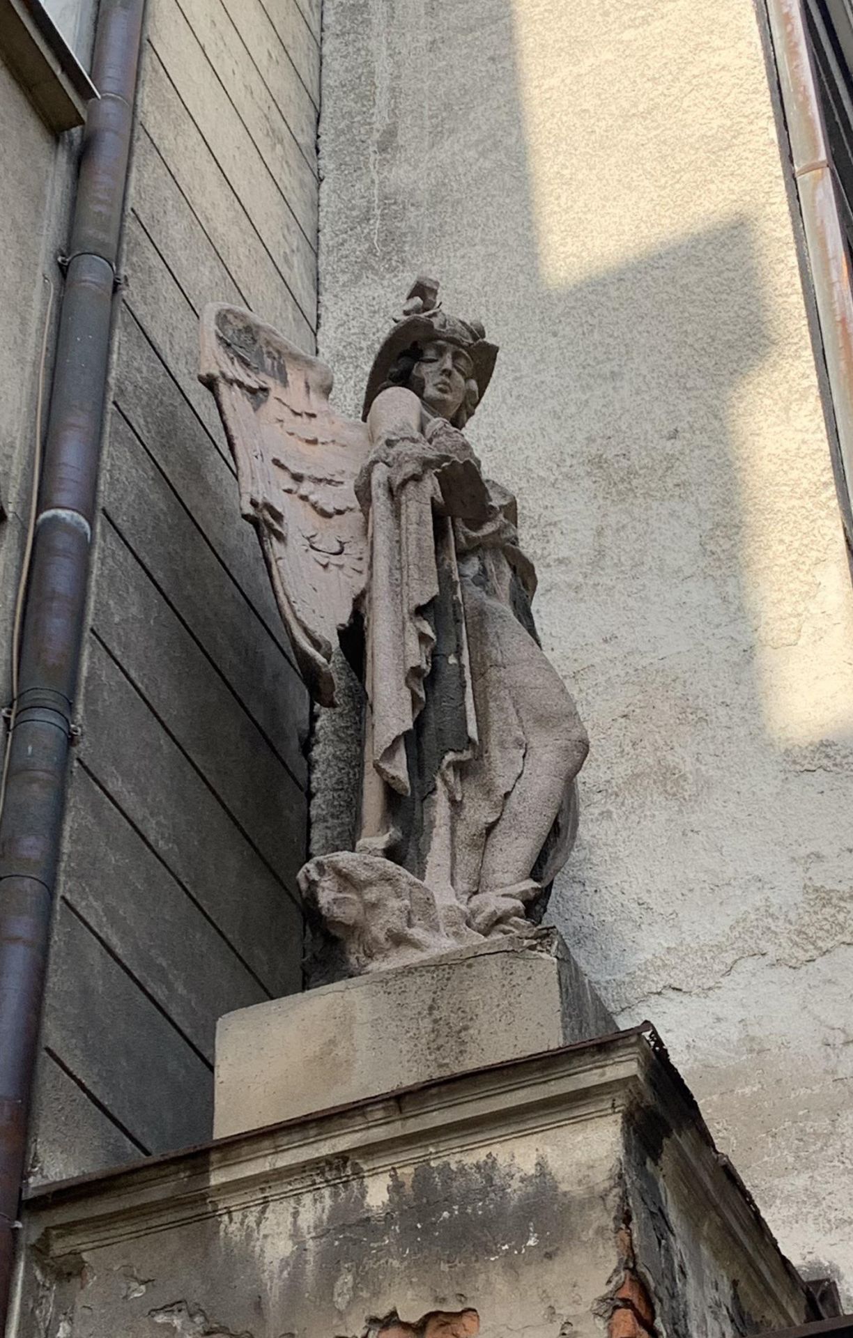 Ako se šetate Resavskom ulicom, gde ista gleda na park Manjež, podignite glavu dok prolazite pored zgrade sa velikim lučnim prolazom, jer ćete na kraju njenog fasadnog platna, u uglu koji se naslanja na drugu zgradu, ugledati misterioznu skulpturu krilate žene. Mnogi prolaznici su se često pitali šta predstavlja ova skulptura, pa ćemo pokušati da istražimo njenog tvorca i koja ideja stoji iza postavljanja baš ove figure na tu zgradu.