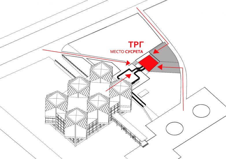 Paviljon u formi i obliku ostvaruje indirektan/neutalan odnos sa objektom MSU, a direktan/posredan odnos preko funkcije samog objekta. Upravo ova dualnost stvorila je određene preduslove da se iz nje same stvara oblik i funkcija budućeg Paviljona, kaže Stanojević.