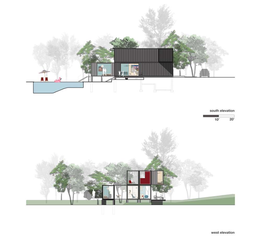 S obzirom na to da su klijenti raspolagali znatno nižim budžetom od potrebnog za izgradnju kuće, ove površine bili su otvoreni za eksperimentisanje sa alternativnim materijalima i metodama gradnje. A koji je bolji način od prefabrikovane izgradnje i primere transportnih kontejnera!