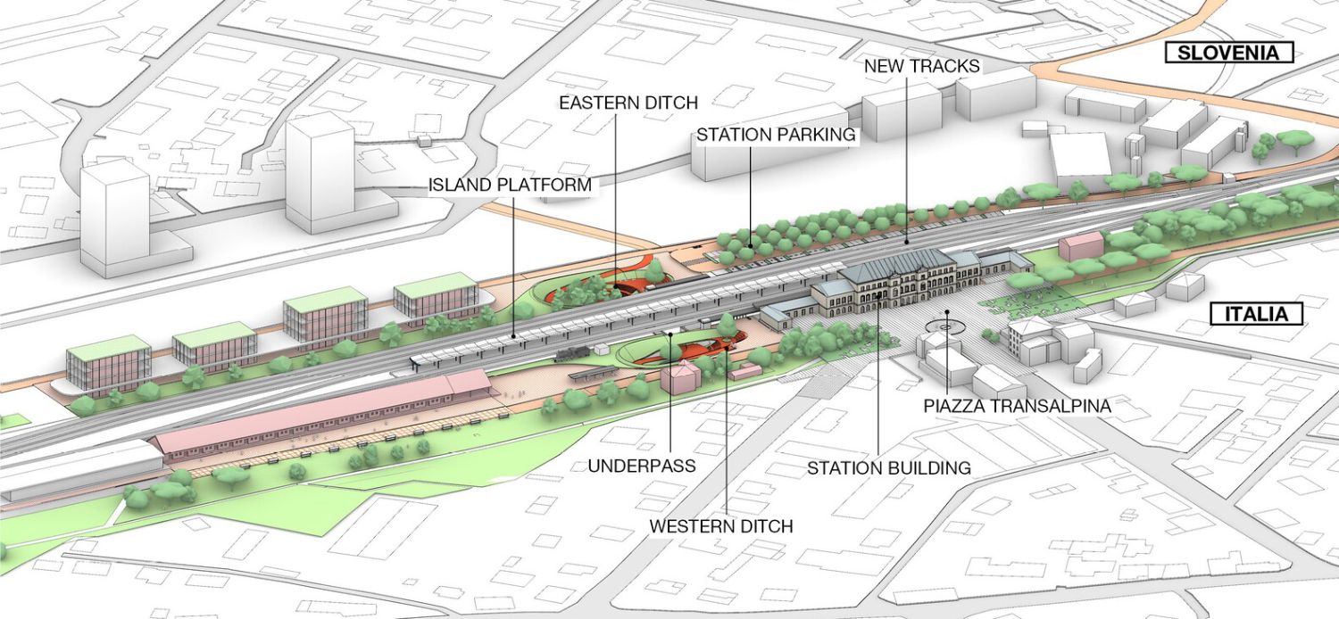 Nova Gorica (Slovenija) i Gorica (Italija) čine retku urbanističku situaciju, gde su dva grada razdvojena samo gotovo nevidljivom linijom državne granice. Nova železnička stanica u Novoj Gorici i podvožnjak Vrtača ne služe samo putnicima i biciklistima, već postaju zajednički javni prostor i simbol povezivanja.
