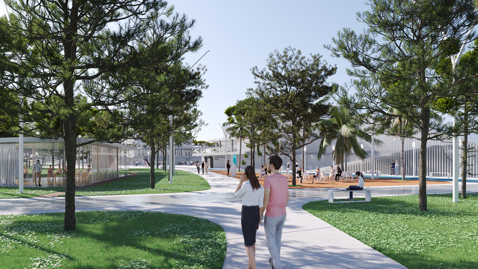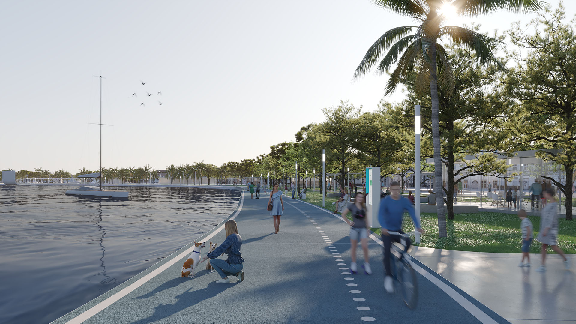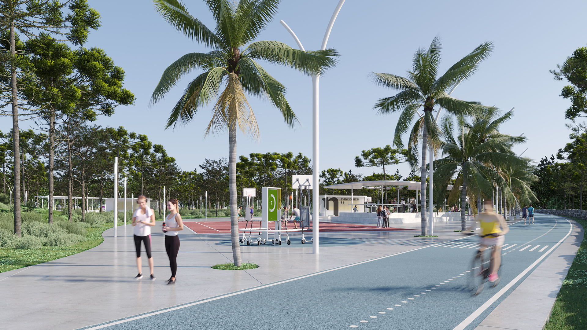 Četiri glavne celine bi međusobno bile povezane pešačkom i biciklističkom linijom. Duž ove linije bi se nalazili sportski i rekreativni sadržaji.