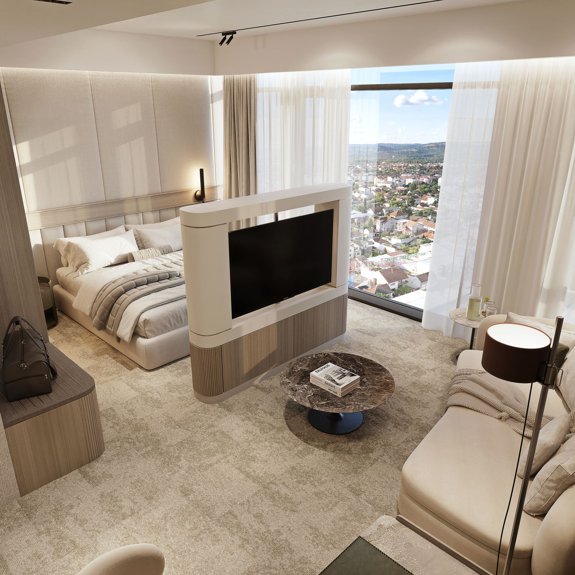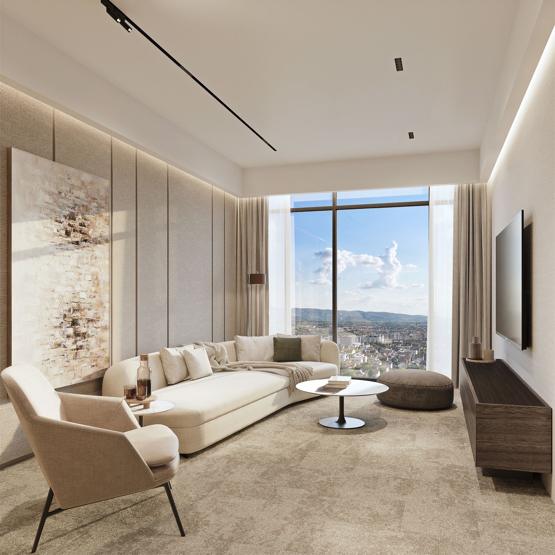 Sa panoramskim pogledom na grad, luksuznim enterijerom i potpunom uslugom — od monumentalnog hola visine 10 m do upravljanja nekretninom kroz Novella hotel sistem – ovi apartmani predstavljaju investiciju koja donosi i profit i prestiž.