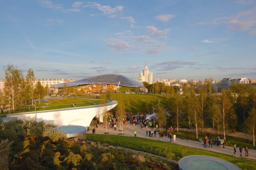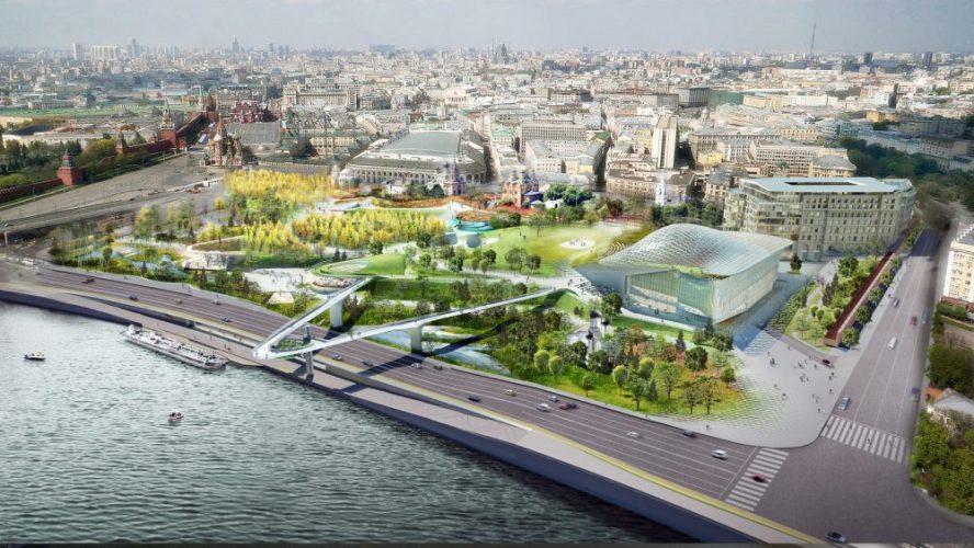 Kao deo novog plana urbanog razvoja Moskve, svečanom ceremonijom je otvoren park Zarjadje površine 35 hektara s ciljem da se poveća površina zelenih prostora u gradu ali i da se uredi ovaj prostor kojeg je nekada „krasio“ predimenzionisani betonski blok hotela Rusija.