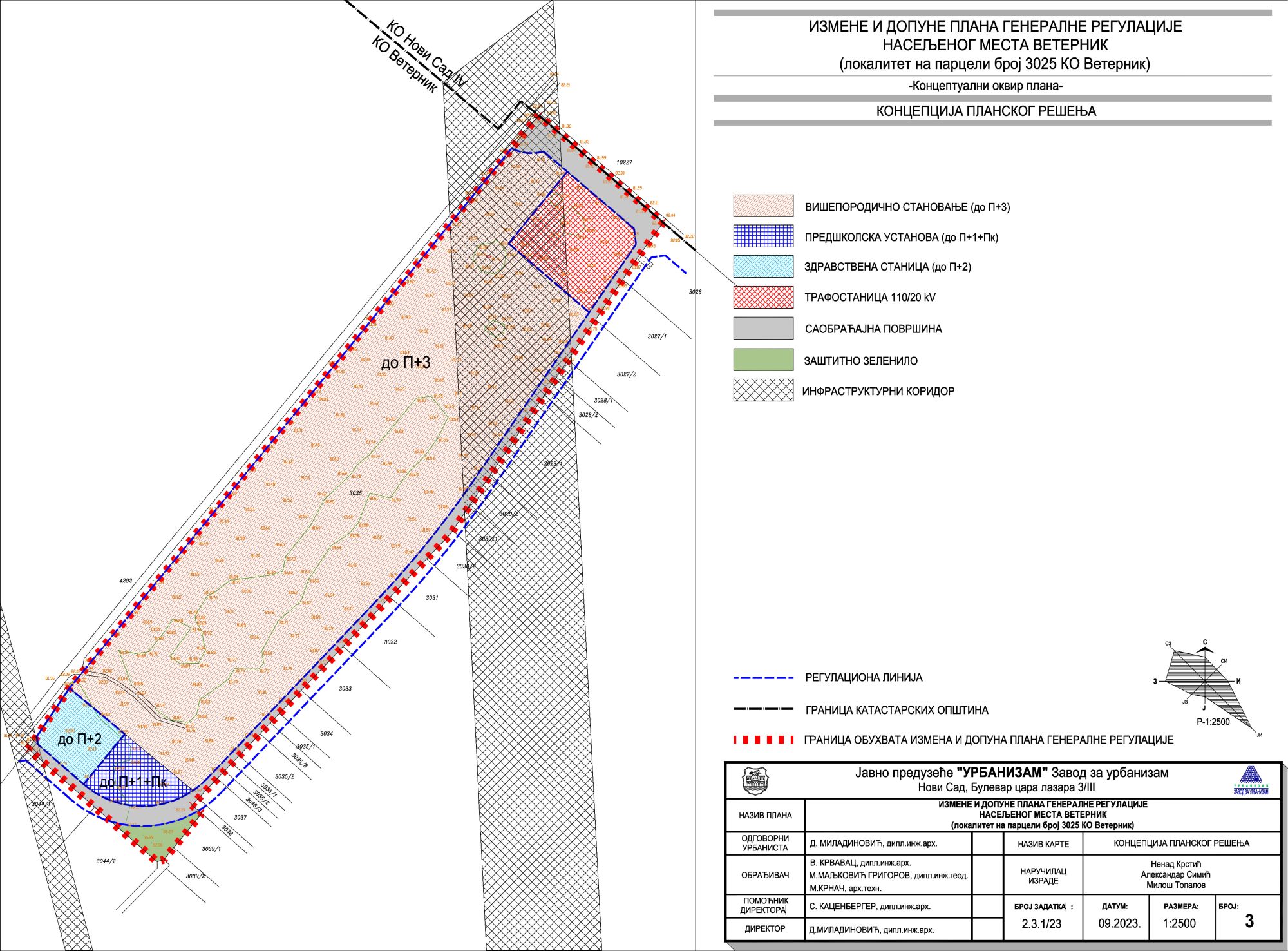 U južnom delu parcele, koji je najbliži Veterniku, planiraju se predškolska ustanova i ustanova zdravstvene zaštite na ukupnoj površini od blizu 0,5 hektara.