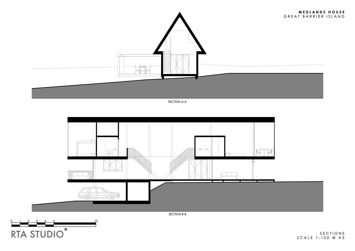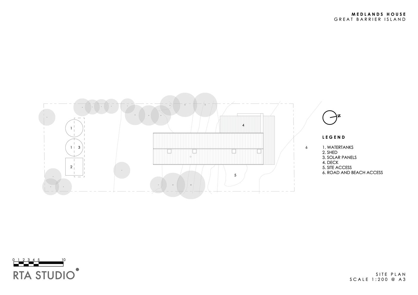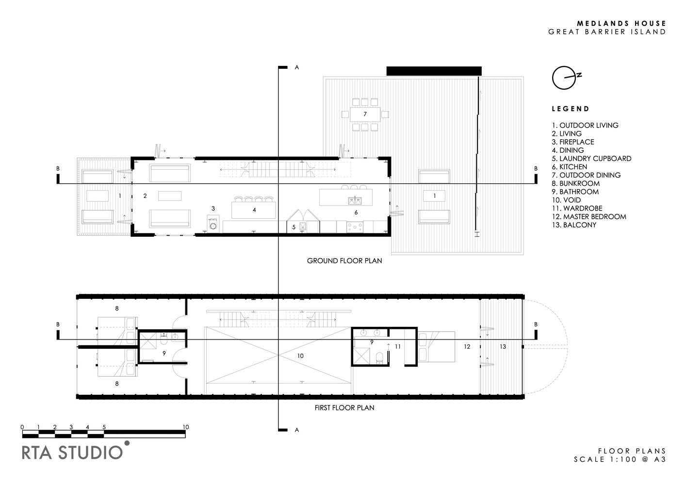 Međutim, gledano sa vode ili plaže, silueta objekta podseća na oznaku luke, čime se odaje počast novozelandskom ostrvu Great Barrier, na kome je ova kuća od 110 kvadrata i sagrađena.