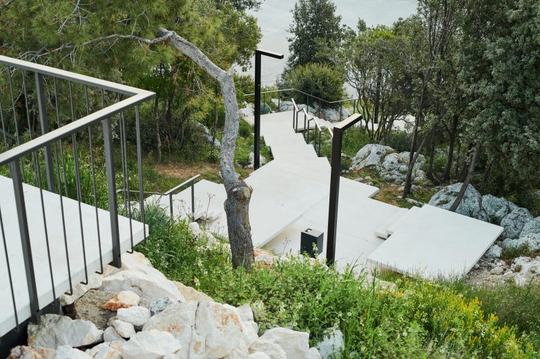 Neposredna okolina ostaje prirodna, mediteranska, uz minimalne intervencije u vidu položenog kamenjara, izrađenog od kamena iz iskopa, navode iz arhitektonskog tima firme SKROZ.