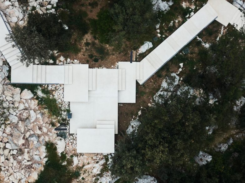 Staza koju su trasirali meštani dobila je moderno stepenište sa krakovima koji se slobodno lome prema terenu, dok u isto vreme omogućavaju prirodi da ponovo osvoji krajolik.