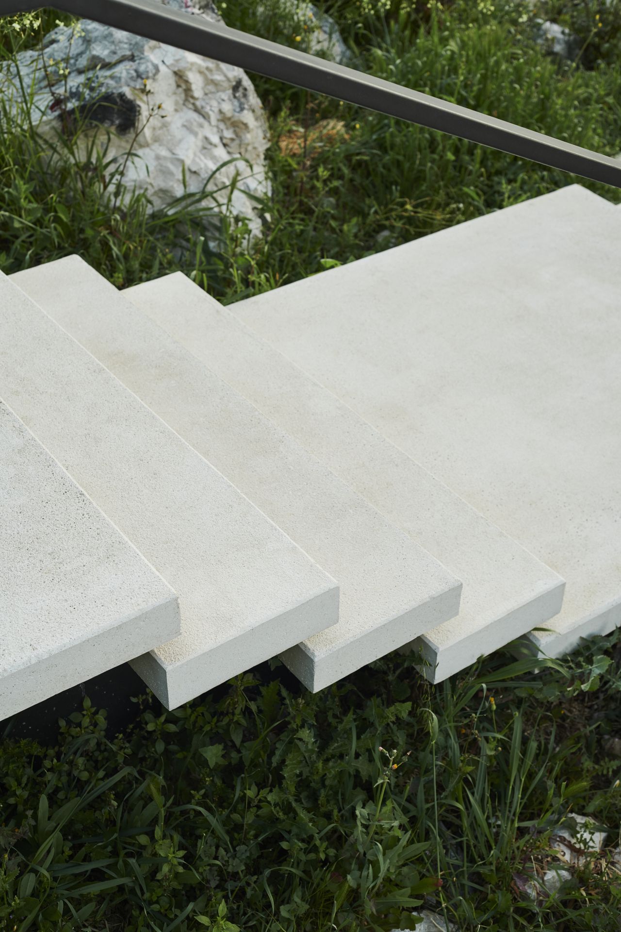 Stepenice naseljavaju prostor lebdeći iznad terena, neometano propuštajući okolinu.