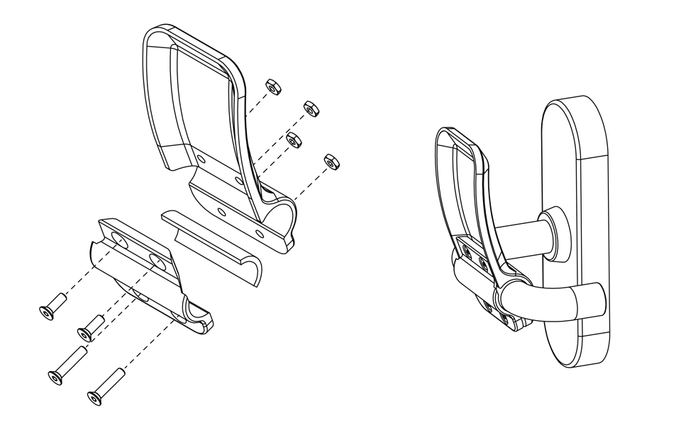 Njihov dodatak za kvaku osmišljen je tako da se lako može instalirati. Nije potrebno da bušite rupe na vratima niti da menjate kvaku. Sve što treba da uradite jeste da sa četiri šrafa međusobno pričvrstite dva 3D štampana dela.